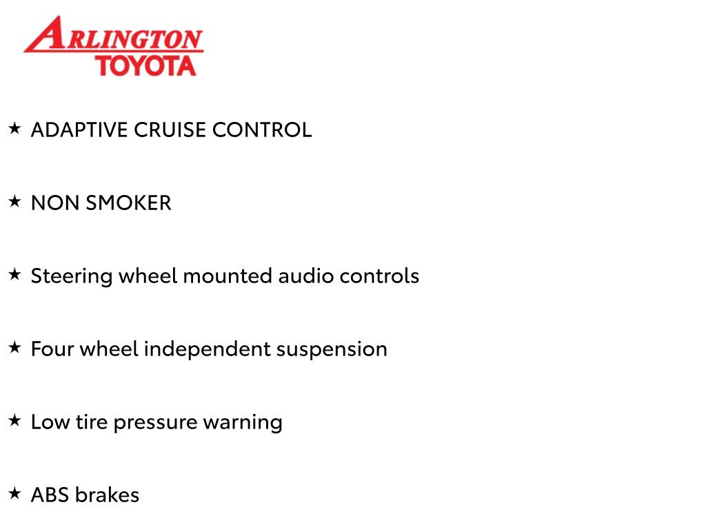 Prices do not include tax, tag, title, a pre-delivery service fee* of $894.00, an electronic registration filing fee* of $199.00 (*these charges represent costs and profits to the dealer for items such as inspecting, cleaning, and preparing documents related to the sale), and an Arlington Toyota Total Value Package of $1,889.00 (*these charges represent costs and profits to the dealer for items such as inspecting, cleaning, and preparing documents related to the sale). The final price is also subject to repair order reconditioning costs. Any price does not include dealer-installed accessories. All offers are mutually exclusive. All vehicles are subject to prior sale. See dealer for complete details.