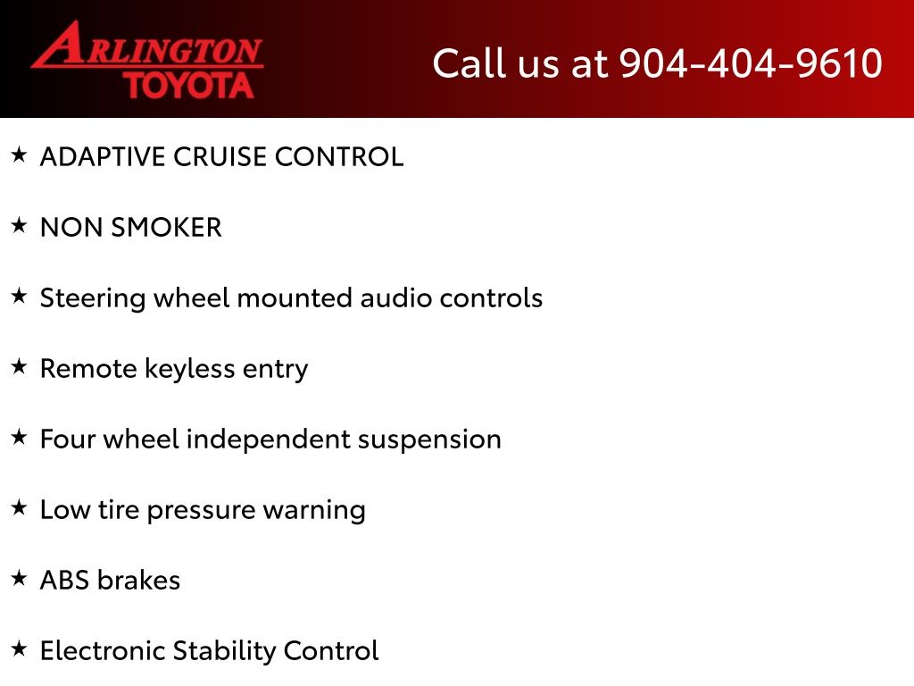 CALL FOR AVAILABILITY AND EXTRA OPTIONS ARLINGTON TOYOTA 904-721-3000.