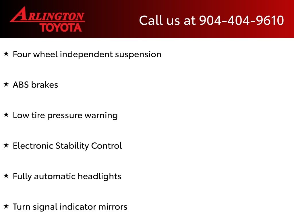 CALL FOR AVAILABILITY AND EXTRA OPTIONS ARLINGTON TOYOTA 904-721-3000.