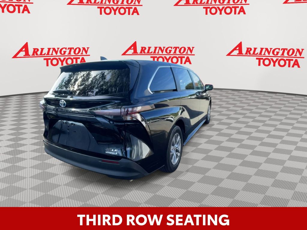 REMAINDER OF FACTORY WARRANTY STILL APPLIES, BACKUP CAMERA, BLUETOOTH HANDS FREE, ANDROID AUTO, APPLE CARPLAY, POWER SEATS, THIRD ROW SEATING, PUSH BUTTON START, LANE DEPARTURE, ADAPTIVE CRUISE CONTROL, NON SMOKER, Sienna LE 8 Passenger, 4D Passenger Van, 2.5L I4, CVT, FWD, Midnight Black Metallic, Graphite Cloth, ABS brakes, Front dual zone A/C, Fully automatic headlights, Low tire pressure warning, Remote keyless entry, Steering wheel mounted audio controls, Turn signal indicator mirrors, 17" Alloy Wheels, 3rd row seats: split-bench, 4-Wheel Disc Brakes, 6 Speakers, Air Conditioning, Alloy wheels, AM/FM radio: SiriusXM, Apple CarPlay/Android Auto, Auto High-beam Headlights, Auto-dimming door mirrors, Automatic temperature control, Axle Ratio: TBA, Brake assist, Bumpers: body-color, Compass, Delay-off headlights, Door auto-latch, Driver door bin, Driver vanity mirror, Driver's Seat Mounted Armrest, Dual front impact airbags, Dual front side impact airbags, Electronic Stability Control, Exterior Parking Camera Rear, Fabric Seat Material, Four wheel independent suspension, Front anti-roll bar, Front Bucket Seats, Front reading lights, Heated door mirrors, Illuminated entry, Knee airbag, Lane Departure Warning System, Occupant sensing airbag, Outside temperature display, Overhead airbag, Overhead console, Panic alarm, Passenger door bin, Passenger seat mounted armrest, Passenger vanity mirror, Power door mirrors, Power driver seat, Power steering, Power windows, Radio data system, Radio: Audio System, Rear air conditioning, Rear anti-roll bar, Rear reading lights, Rear seat center armrest, Rear side impact airbag, Rear window defroster, Rear window wiper, Reclining 3rd row seat, Speed control, Speed-sensing steering, Split folding rear seat, Spoiler, Tachometer, Telescoping steering wheel, Tilt steering wheel, Traction control, Trip computer, Variably intermittent wipers, Sienna LE 8 Passenger, 4D Passenger Van, 2.5L I4, CVT, FWD, Midnight Black Metallic, Graphite Cloth, ABS brakes, Front dual zone A/C, Fully automatic headlights, Low tire pressure warning, Remote keyless entry, Steering wheel mounted audio controls, Turn signal indicator mirrors.