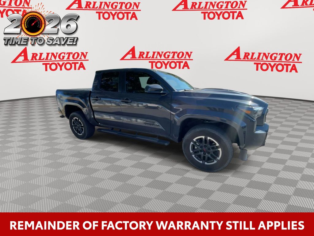 REMAINDER OF FACTORY WARRANTY STILL APPLIES, BACKUP CAMERA, BLUETOOTH HANDS FREE, BED LINER, LOCAL TRADE IN, TOW PACKAGE, PUSH BUTTON START, LANE DEPARTURE, ADAPTIVE CRUISE CONTROL, NON SMOKER, Tacoma TRD Sport, 4D Double Cab, 2.4L 4-Cylinder, 8-Speed Automatic, RWD, Underground, Boulder w/Fabric Seat Trim, 3.583 Axle Ratio, 4-Wheel Disc Brakes, 6 Speakers, ABS brakes, Air Conditioning, Alloy wheels, AM/FM radio: SiriusXM, Anti-whiplash front head restraints, Apple CarPlay/Android Auto, Auto High-beam Headlights, Auto-dimming Rear-View mirror, Brake assist, Bumpers: body-color, Driver door bin, Dual front impact airbags, Dual front side impact airbags, Electronic Stability Control, Emergency communication system: Safety Connect (1-year trial), Exterior Parking Camera Rear, Four wheel independent suspension, Front anti-roll bar, Front Bucket Seats, Front Center Armrest, Front fog lights, Front reading lights, Fully automatic headlights, Heated door mirrors, Illuminated entry, Knee airbag, Low tire pressure warning, Occupant sensing airbag, Outside temperature display, Overhead airbag, Overhead console, Panic alarm, Passenger door bin, Power door mirrors, Power steering, Power windows, Radio: 8" Toyota Audio Multimedia, Rear step bumper, Rear window defroster, Remote keyless entry, Speed control, Speed-sensing steering, Split folding rear seat, Steering wheel mounted audio controls, Tachometer, Telescoping steering wheel, Tilt steering wheel, Traction control, Trip computer, Variably intermittent wipers, Tacoma TRD Sport, 4D Double Cab, 2.4L 4-Cylinder, 8-Speed Automatic, RWD, Underground, Boulder w/Fabric Seat Trim.