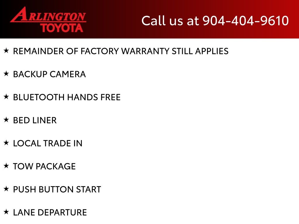 CALL FOR AVAILABILITY AND EXTRA OPTIONS ARLINGTON TOYOTA 904-721-3000.