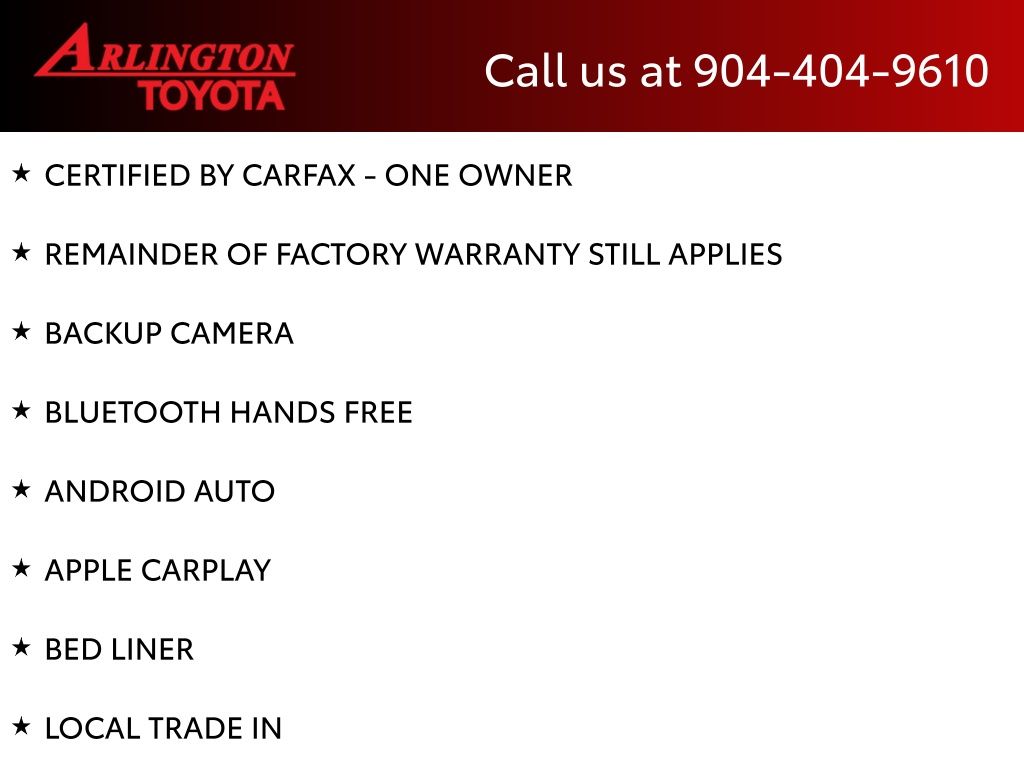 CALL FOR AVAILABILITY AND EXTRA OPTIONS ARLINGTON TOYOTA 904-721-3000.