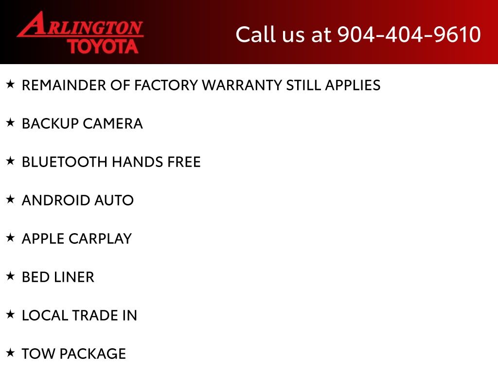 CALL FOR AVAILABILITY AND EXTRA OPTIONS ARLINGTON TOYOTA 904-721-3000.