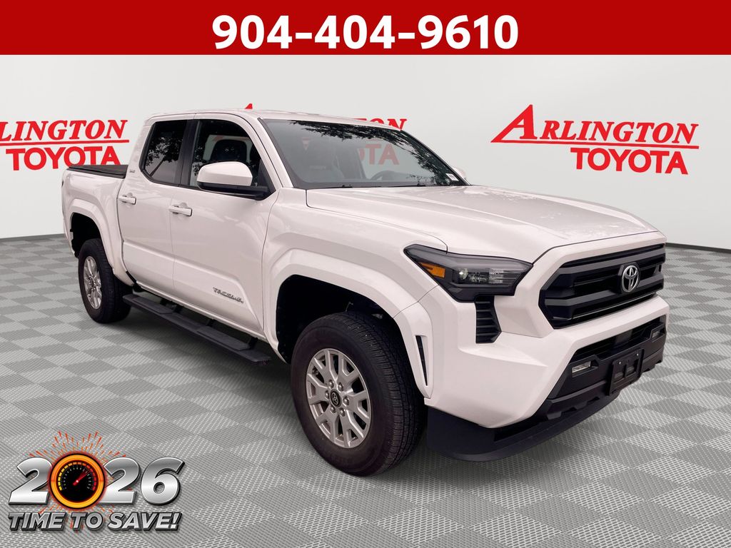 REMAINDER OF FACTORY WARRANTY STILL APPLIES, BACKUP CAMERA, BLUETOOTH HANDS FREE, ANDROID AUTO, APPLE CARPLAY, BED LINER, LOCAL TRADE IN, TOW PACKAGE, PUSH BUTTON START, LANE DEPARTURE, ADAPTIVE CRUISE CONTROL, NON SMOKER, Tacoma SR5, 4D Double Cab, 2.4L 4-Cylinder, 8-Speed Automatic, RWD, Ice Cap, Boulder w/Fabric Seat Trim, ABS brakes, Low tire pressure warning, Steering wheel mounted audio controls, 3.583 Axle Ratio, 4-Wheel Disc Brakes, 6 Speakers, Air Conditioning, Alloy wheels, AM/FM radio: SiriusXM, Anti-whiplash front head restraints, Apple CarPlay/Android Auto, Auto High-beam Headlights, Auto-dimming Rear-View mirror, Brake assist, Bumpers: body-color, Driver door bin, Dual front impact airbags, Dual front side impact airbags, Electronic Stability Control, Exterior Parking Camera Rear, Four wheel independent suspension, Front anti-roll bar, Front Bucket Seats, Front Center Armrest, Front fog lights, Front reading lights, Fully automatic headlights, Heated door mirrors, Illuminated entry, Knee airbag, Occupant sensing airbag, Outside temperature display, Overhead airbag, Overhead console, Panic alarm, Passenger door bin, Power door mirrors, Power steering, Power windows, Radio: 8" Toyota Audio Multimedia, Rear step bumper, Rear window defroster, Remote keyless entry, Speed control, Speed-sensing steering, Split folding rear seat, Tachometer, Telescoping steering wheel, Tilt steering wheel, Traction control, Trip computer, Variably intermittent wipers, Wheels: 17" Styled Alloy, Tacoma SR5, 4D Double Cab, 2.4L 4-Cylinder, 8-Speed Automatic, RWD, Ice Cap, Boulder w/Fabric Seat Trim, ABS brakes, Low tire pressure warning, Steering wheel mounted audio controls.