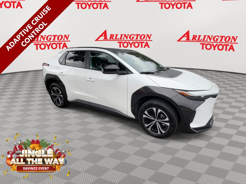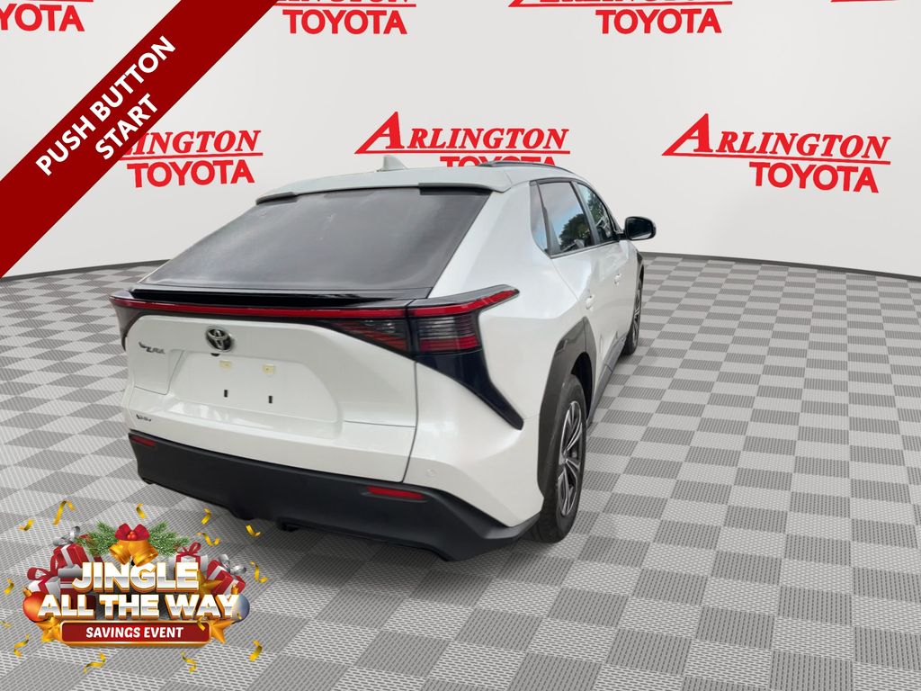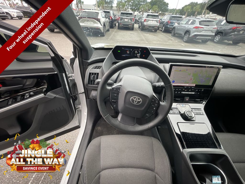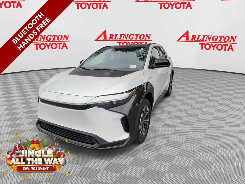 BACKUP CAMERA, BLUETOOTH HANDS FREE, POWER SEATS, POWER LIFTGATE, SUNROOF/MOONROOF, PUSH BUTTON START, LANE DEPARTURE, ADAPTIVE CRUISE CONTROL, NON SMOKER, bZ4X XLE, 4D Sport Utility, Electric Motor, Single-Speed Automatic, FWD, Wind Chill Pearl, Black w/Fabric & SofTex Seat Trim, ABS brakes, Electronic Stability Control, Four wheel independent suspension, Front dual zone A/C, Low tire pressure warning, Remote keyless entry, Steering wheel mounted audio controls, 4-Wheel Disc Brakes, 6 Speakers, Air Conditioning, Alloy wheels, AM/FM radio: SiriusXM, Apple CarPlay/Android Auto, Auto High-beam Headlights, Auto-dimming Rear-View mirror, Automatic temperature control, Axle Ratio TBD, Brake assist, Bumpers: body-color, Delay-off headlights, Driver door bin, Driver vanity mirror, Dual front impact airbags, Dual front side impact airbags, Exterior Parking Camera Rear, Fabric & SofTex Seat Trim, Front anti-roll bar, Front Bucket Seats, Front Center Armrest, Front reading lights, Front Seats, Fully automatic headlights, Heated door mirrors, Illuminated entry, Knee airbag, Leather steering wheel, Navigation system: Drive Connect (3 year trial) includes Cloud Navigation with real time traffic and Google POI, Occupant sensing airbag, Outside temperature display, Overhead airbag, Overhead console, Panic alarm, Passenger door bin, Passenger vanity mirror, Power door mirrors, Power driver seat, Power Liftgate, Power steering, Power windows, Radio data system, Radio: 12.3" Toyota Audio Multimedia w/6 Speakers, Rain sensing wipers, Rear anti-roll bar, Rear seat center armrest, Rear window defroster, Security system, Speed control, Speed-sensing steering, Split folding rear seat, Spoiler, Telescoping steering wheel, Tilt steering wheel, Traction control, Trip computer, Turn signal indicator mirrors, Variably intermittent wipers, Wheels: 18" Alloy w/Two-Tone Covers, bZ4X XLE, 4D Sport Utility, Electric Motor, Single-Speed Automatic, FWD, Wind Chill Pearl, Black w/Fabric & SofTex Seat Trim, ABS brakes, Electronic Stability Control, Four wheel independent suspension, Front dual zone A/C, Low tire pressure warning, Remote keyless entry, Steering wheel mounted audio controls.