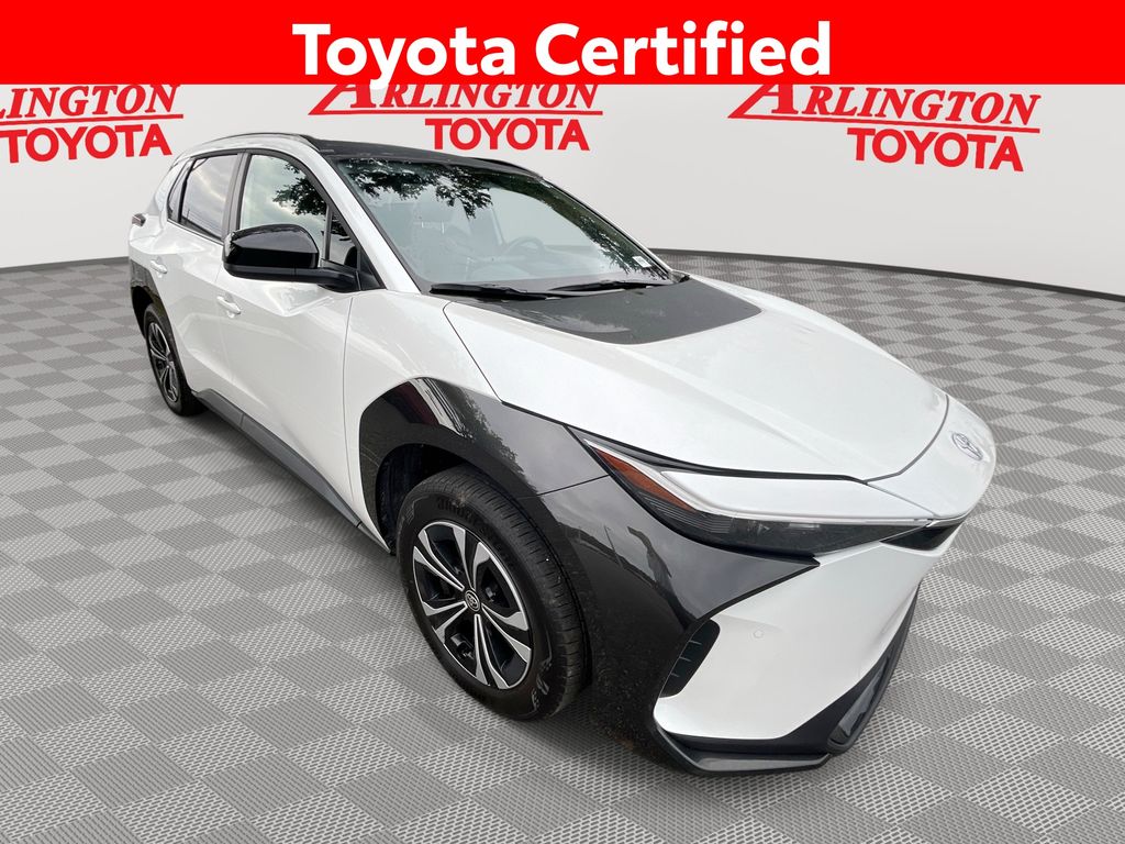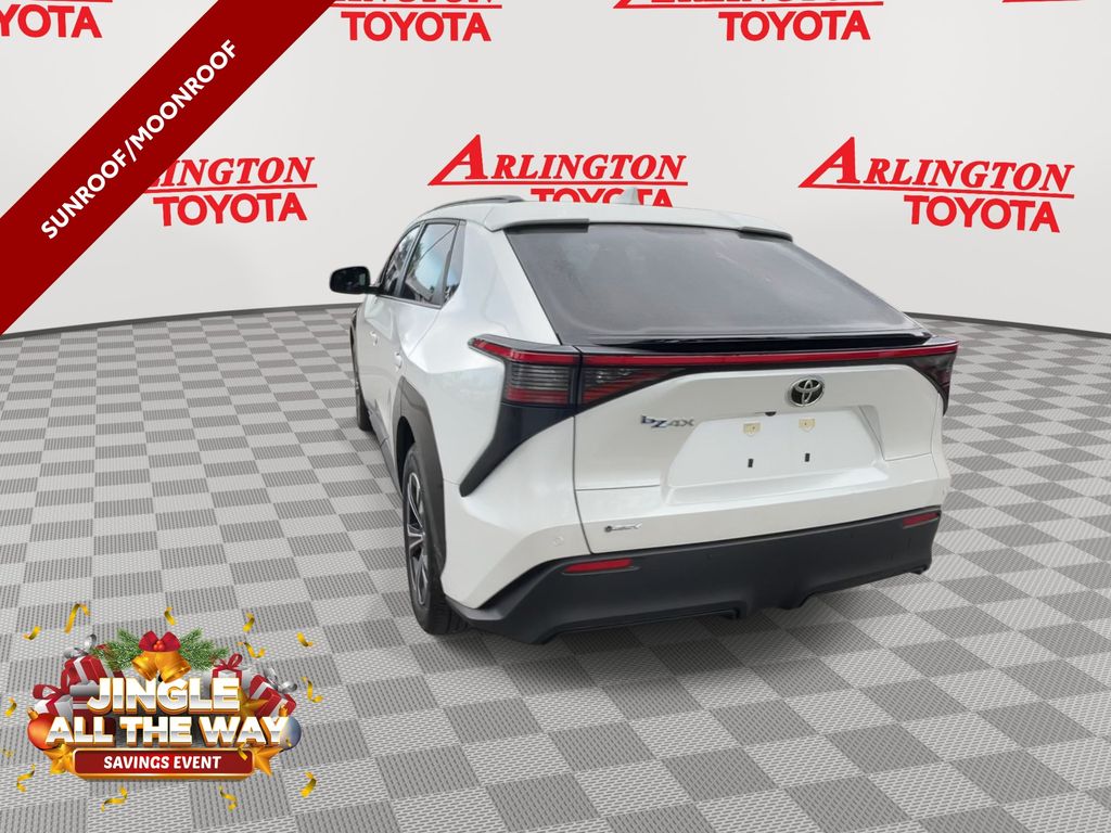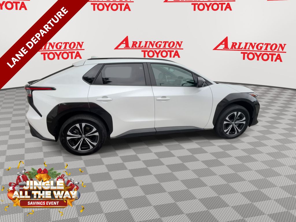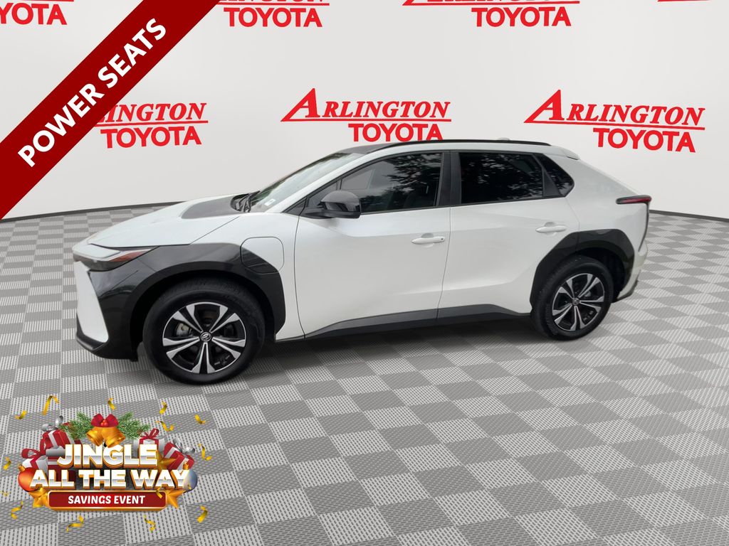 BACKUP CAMERA, BLUETOOTH HANDS FREE, POWER SEATS, POWER LIFTGATE, SUNROOF/MOONROOF, PUSH BUTTON START, LANE DEPARTURE, ADAPTIVE CRUISE CONTROL, NON SMOKER, bZ4X XLE, 4D Sport Utility, Electric Motor, Single-Speed Automatic, FWD, Wind Chill Pearl, Black w/Fabric & SofTex Seat Trim, ABS brakes, Electronic Stability Control, Four wheel independent suspension, Front dual zone A/C, Low tire pressure warning, Remote keyless entry, Steering wheel mounted audio controls, 4-Wheel Disc Brakes, 6 Speakers, Air Conditioning, Alloy wheels, AM/FM radio: SiriusXM, Apple CarPlay/Android Auto, Auto High-beam Headlights, Auto-dimming Rear-View mirror, Automatic temperature control, Axle Ratio TBD, Brake assist, Bumpers: body-color, Delay-off headlights, Driver door bin, Driver vanity mirror, Dual front impact airbags, Dual front side impact airbags, Exterior Parking Camera Rear, Fabric & SofTex Seat Trim, Front anti-roll bar, Front Bucket Seats, Front Center Armrest, Front reading lights, Front Seats, Fully automatic headlights, Heated door mirrors, Illuminated entry, Knee airbag, Leather steering wheel, Navigation system: Drive Connect (3 year trial) includes Cloud Navigation with real time traffic and Google POI, Occupant sensing airbag, Outside temperature display, Overhead airbag, Overhead console, Panic alarm, Passenger door bin, Passenger vanity mirror, Power door mirrors, Power driver seat, Power Liftgate, Power steering, Power windows, Radio data system, Radio: 12.3" Toyota Audio Multimedia w/6 Speakers, Rain sensing wipers, Rear anti-roll bar, Rear seat center armrest, Rear window defroster, Security system, Speed control, Speed-sensing steering, Split folding rear seat, Spoiler, Telescoping steering wheel, Tilt steering wheel, Traction control, Trip computer, Turn signal indicator mirrors, Variably intermittent wipers, Wheels: 18" Alloy w/Two-Tone Covers, bZ4X XLE, 4D Sport Utility, Electric Motor, Single-Speed Automatic, FWD, Wind Chill Pearl, Black w/Fabric & SofTex Seat Trim, ABS brakes, Electronic Stability Control, Four wheel independent suspension, Front dual zone A/C, Low tire pressure warning, Remote keyless entry, Steering wheel mounted audio controls.