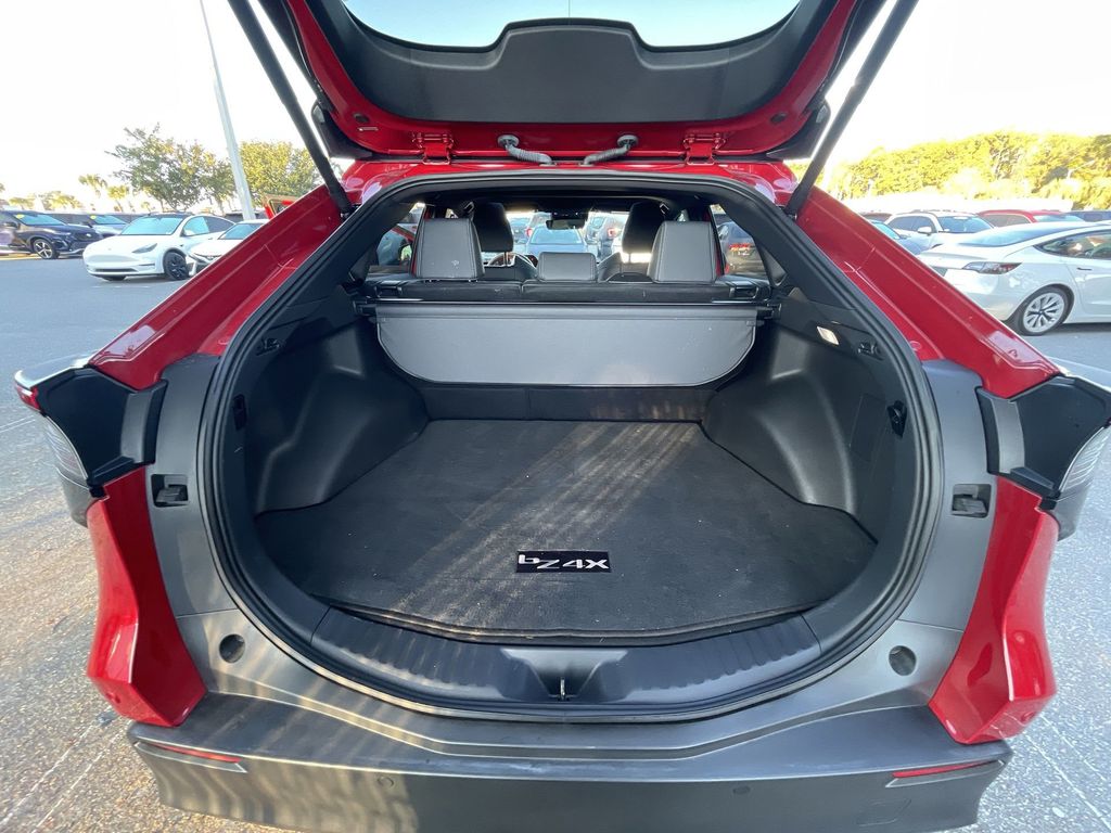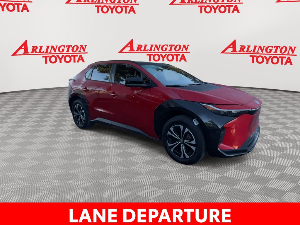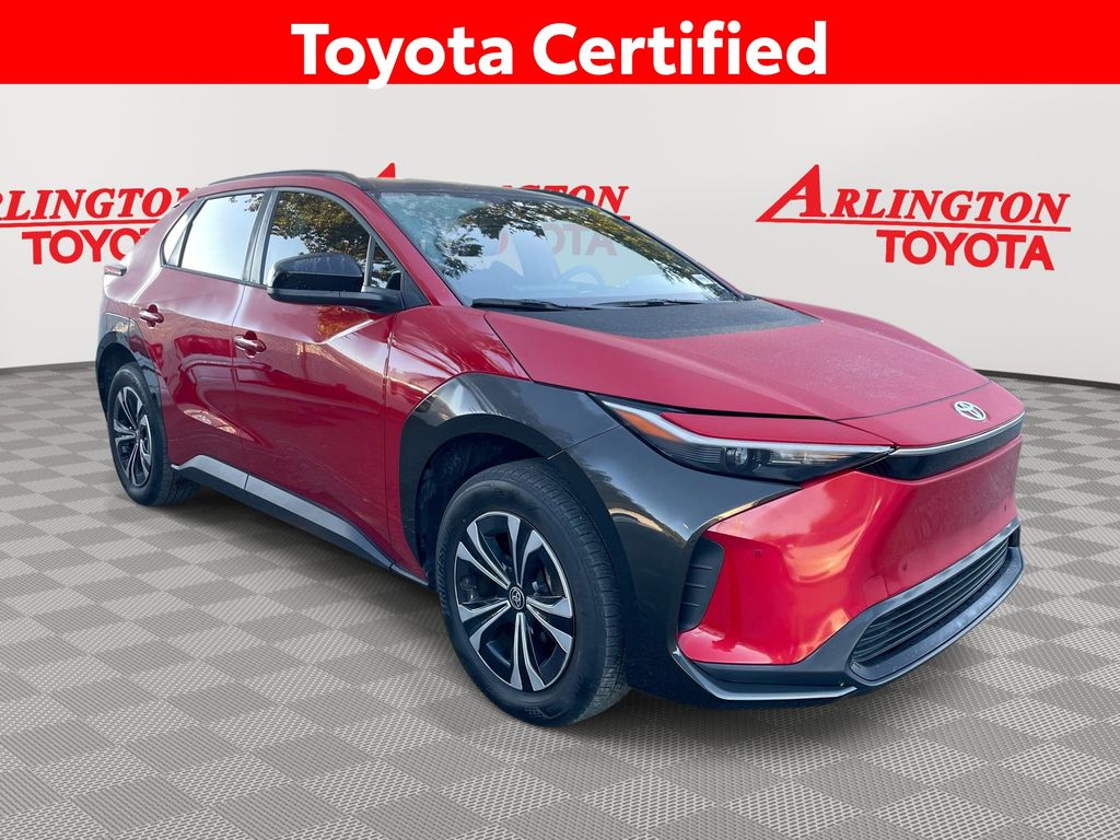 CERTIFIED BY CARFAX - ONE OWNER, REMAINDER OF FACTORY WARRANTY STILL APPLIES, BACKUP CAMERA, BLUETOOTH HANDS FREE, ANDROID AUTO, APPLE CARPLAY, PUSH BUTTON START, LANE DEPARTURE, ADAPTIVE CRUISE CONTROL, NON SMOKER, bZ4X XLE, 4D Sport Utility, Electric Motor, Single-Speed Automatic, FWD, Supersonic Red, Black w/Fabric & SofTex Seat Trim, ABS brakes, Four wheel independent suspension, Low tire pressure warning, Remote keyless entry, Steering wheel mounted audio controls, 4-Wheel Disc Brakes, 6 Speakers, Air Conditioning, Alloy wheels, AM/FM radio: SiriusXM, Apple CarPlay/Android Auto, Auto High-beam Headlights, Auto-dimming Rear-View mirror, Automatic temperature control, Axle Ratio TBD, Brake assist, Bumpers: body-color, Delay-off headlights, Driver door bin, Driver vanity mirror, Dual front impact airbags, Dual front side impact airbags, Electronic Stability Control, Exterior Parking Camera Rear, Fabric & SofTex Seat Trim, Front anti-roll bar, Front Bucket Seats, Front Center Armrest, Front dual zone A/C, Front reading lights, Front Seats, Fully automatic headlights, Heated door mirrors, Illuminated entry, Knee airbag, Leather steering wheel, Navigation system: Drive Connect (3 year trial) includes Cloud Navigation with real time traffic and Google POI, Occupant sensing airbag, Outside temperature display, Overhead airbag, Overhead console, Panic alarm, Passenger door bin, Passenger vanity mirror, Power door mirrors, Power driver seat, Power Liftgate, Power steering, Power windows, Radio data system, Radio: 12.3" Toyota Audio Multimedia w/6 Speakers, Rain sensing wipers, Rear anti-roll bar, Rear seat center armrest, Rear window defroster, Security system, Speed control, Speed-sensing steering, Split folding rear seat, Spoiler, Telescoping steering wheel, Tilt steering wheel, Traction control, Trip computer, Turn signal indicator mirrors, Variably intermittent wipers, Wheels: 18" Alloy w/Two-Tone Covers, bZ4X XLE, 4D Sport Utility, Electric Motor, Single-Speed Automatic, FWD, Supersonic Red, Black w/Fabric & SofTex Seat Trim, ABS brakes, Four wheel independent suspension, Low tire pressure warning, Remote keyless entry, Steering wheel mounted audio controls.