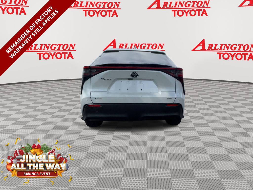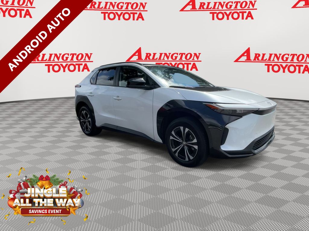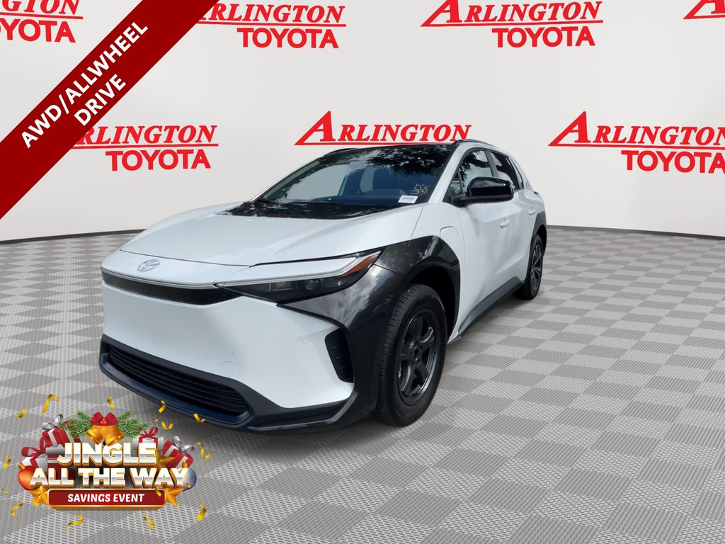 CERTIFIED BY CARFAX - ONE OWNER, REMAINDER OF FACTORY WARRANTY STILL APPLIES, BACKUP CAMERA, BLUETOOTH HANDS FREE, ANDROID AUTO, APPLE CARPLAY, AWD/ALLWHEEL DRIVE, LOW MILES, PUSH BUTTON START, LANE DEPARTURE, ADAPTIVE CRUISE CONTROL, NON SMOKER, bZ4X XLE AWD, 4D Sport Utility, Electric Motor, Single-Speed Automatic, AWD, Wind Chill Pearl, Black w/SofTex Seat Trim, ABS brakes, Alloy wheels, Electronic Stability Control, Front dual zone A/C, Heated door mirrors, Illuminated entry, Low tire pressure warning, Power Liftgate, Remote keyless entry, Traction control, 4-Wheel Disc Brakes, 6 Speakers, Air Conditioning, AM/FM radio: SiriusXM, Apple CarPlay/Android Auto, Auto High-beam Headlights, Auto-dimming Rear-View mirror, Automatic temperature control, Axle Ratio TBD, Brake assist, Bumpers: body-color, Delay-off headlights, Driver door bin, Driver vanity mirror, Dual front impact airbags, Dual front side impact airbags, Emergency communication system: Safety Connect (10-year trial), Exterior Parking Camera Rear, Fabric & SofTex Seat Trim, Four wheel independent suspension, Front anti-roll bar, Front Bucket Seats, Front Center Armrest, Front reading lights, Front Seats, Fully automatic headlights, Knee airbag, Leather steering wheel, Navigation system: Drive Connect (3 year trial) includes Cloud Navigation with real time traffic and Google POI, Occupant sensing airbag, Outside temperature display, Overhead airbag, Overhead console, Panic alarm, Passenger door bin, Passenger vanity mirror, Power door mirrors, Power driver seat, Power steering, Power windows, Radio data system, Radio: 12.3" Toyota Audio Multimedia w/6 Speakers, Rain sensing wipers, Rear anti-roll bar, Rear seat center armrest, Rear window defroster, Security system, Speed control, Speed-sensing steering, Split folding rear seat, Spoiler, Steering wheel mounted audio controls, Telescoping steering wheel, Tilt steering wheel, Trip computer, Turn signal indicator mirrors, Variably intermittent wipers, Wheels: 18" Alloy w/Two-Tone Covers, bZ4X XLE AWD, 4D Sport Utility, Electric Motor, Single-Speed Automatic, AWD, Wind Chill Pearl, Black w/SofTex Seat Trim, ABS brakes, Alloy wheels, Electronic Stability Control, Front dual zone A/C, Heated door mirrors, Illuminated entry, Low tire pressure warning, Power Liftgate, Remote keyless entry, Traction control.