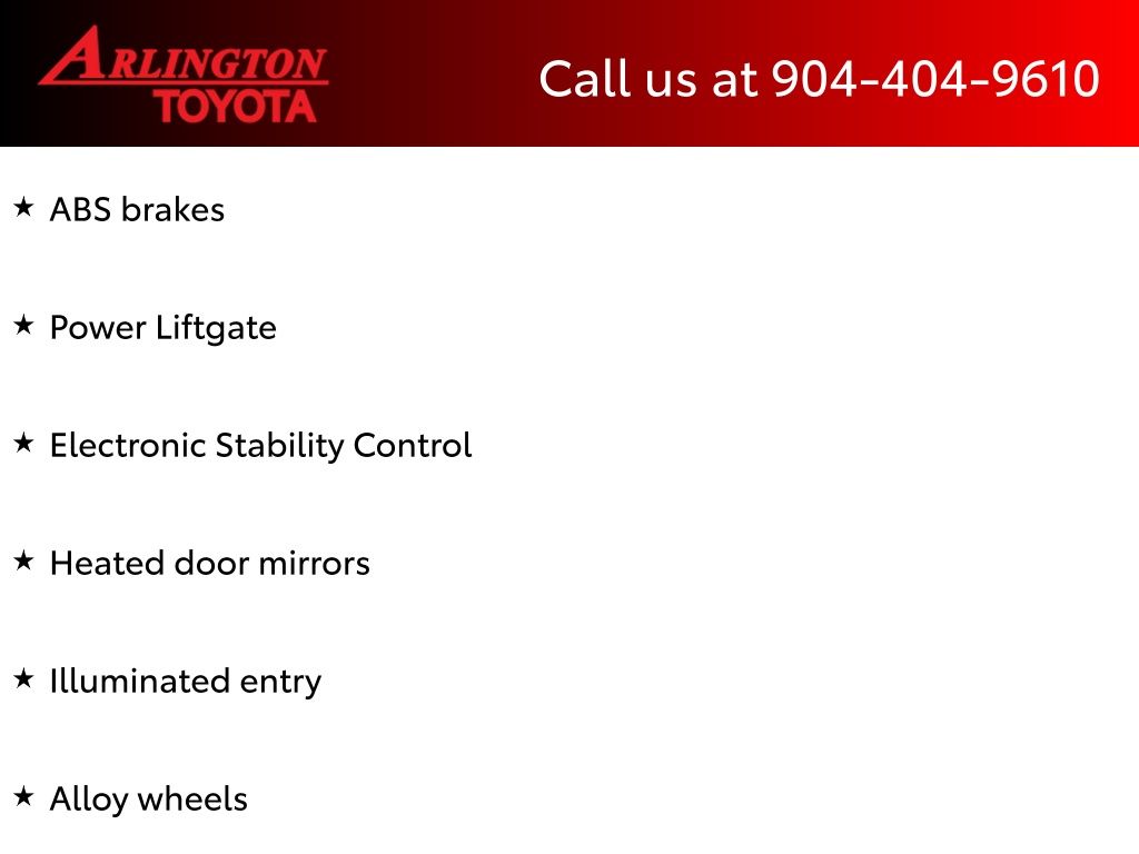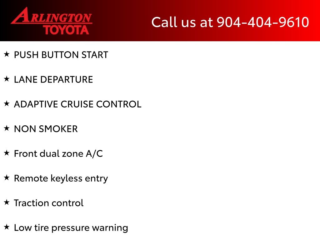 CALL FOR AVAILABILITY AND EXTRA OPTIONS ARLINGTON TOYOTA 904-721-3000.