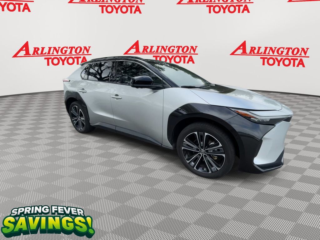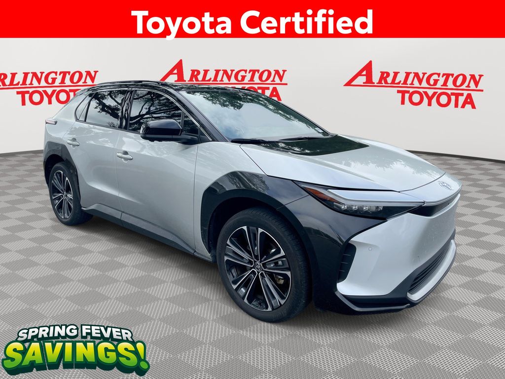 CERTIFIED BY CARFAX - ONE OWNER, REMAINDER OF FACTORY WARRANTY STILL APPLIES, BACKUP CAMERA, BLUETOOTH HANDS FREE, ANDROID AUTO, APPLE CARPLAY, POWER SEATS, PUSH BUTTON START, LANE DEPARTURE, ADAPTIVE CRUISE CONTROL, NON SMOKER, bZ4X Limited AWD, Toyota Gold Certified Certified, 4D Sport Utility, Electric Motor, Single-Speed Automatic, AWD, Elemental Silver Metallic, Light Gray w/SofTex Seat Trim, ABS brakes, Electronic Stability Control, Four wheel independent suspension, Front dual zone A/C, Low tire pressure warning, Steering wheel mounted audio controls, Turn signal indicator mirrors, 4-Wheel Disc Brakes, 6 Speakers, Air Conditioning, Alloy wheels, AM/FM radio: SiriusXM, Apple CarPlay/Android Auto, Auto High-beam Headlights, Auto-dimming Rear-View mirror, Automatic temperature control, Axle Ratio TBD, Brake assist, Bumpers: body-color, Delay-off headlights, Driver door bin, Driver vanity mirror, Dual front impact airbags, Dual front side impact airbags, Exterior Parking Camera Rear, Front anti-roll bar, Front Bucket Seats, Front Center Armrest, Front Radiant Foot & Leg Heater, Front reading lights, Fully automatic headlights, Garage door transmitter: HomeLink, Heated & Ventilated Front Seats, Heated door mirrors, Heated front seats, Heated Rear Seats, Heated steering wheel, Illuminated entry, Knee airbag, Leather steering wheel, Navigation system: Drive Connect (3 year trial) includes Cloud Navigation with real time traffic and Google POI, Occupant sensing airbag, Outside temperature display, Overhead airbag, Overhead console, Panic alarm, Passenger door bin, Passenger vanity mirror, Power door mirrors, Power driver seat, Power Liftgate, Power steering, Power windows, Radio data system, Radio: 12.3" Toyota Audio Multimedia w/6 Speakers, Radio: JBL Premium Audio w/9 Speakers, Rain sensing wipers, Rear anti-roll bar, Rear seat center armrest, Rear window defroster, Remote keyless entry, Security system, SofTex Seat Trim, Speed control, Speed-sensing steering, Split folding rear seat, Split Roof Rear Spoiler, Spoiler, Telescoping steering wheel, Tilt steering wheel, Traction control, Trip computer, Two-Tone Exterior Color, Variably intermittent wipers, Ventilated front seats, Weather Package, Wheels: 20" Multi-Spoke Machine-Finished Alloy, bZ4X Limited AWD, 4D Sport Utility, Electric Motor, Single-Speed Automatic, AWD, Elemental Silver Metallic, Light Gray w/SofTex Seat Trim, ABS brakes, Electronic Stability Control, Four wheel independent suspension, Front dual zone A/C, Low tire pressure warning, Steering wheel mounted audio controls, Turn signal indicator mirrors.