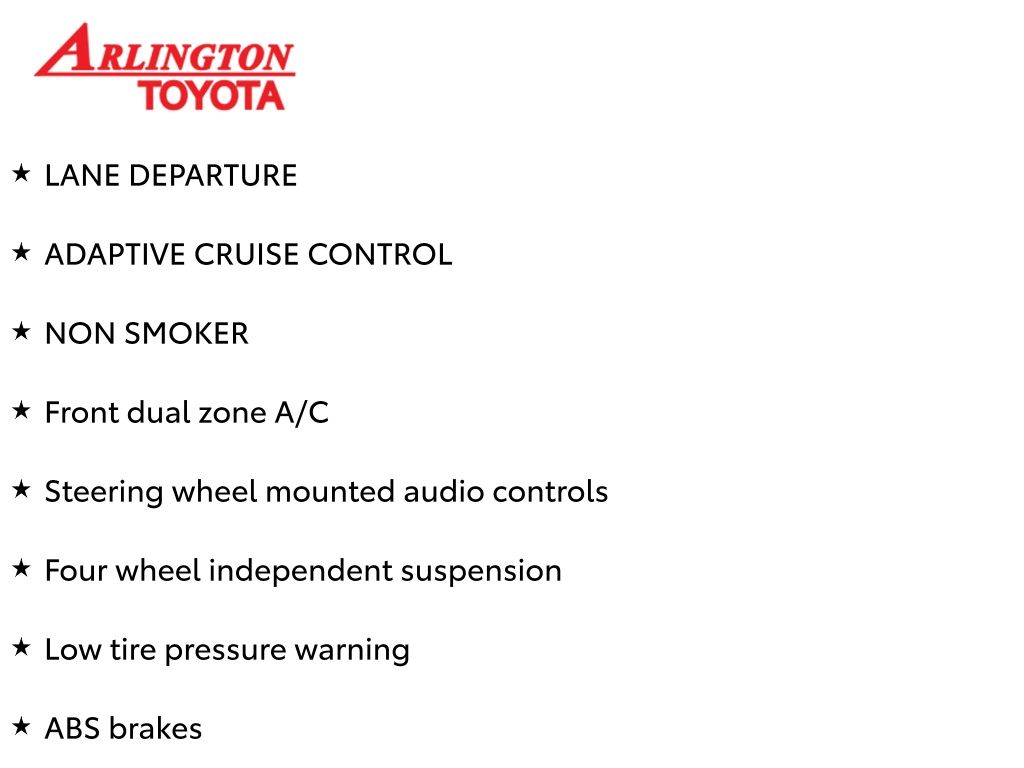 Prices do not include tax, tag, title, a pre-delivery service fee* of $894.00, an electronic registration filing fee* of $199.00 (*these charges represent costs and profits to the dealer for items such as inspecting, cleaning, and preparing documents related to the sale), and an Arlington Toyota Total Value Package of $1,889.00 (*these charges represent costs and profits to the dealer for items such as inspecting, cleaning, and preparing documents related to the sale). The final price is also subject to repair order reconditioning costs. Any price does not include dealer-installed accessories. All offers are mutually exclusive. All vehicles are subject to prior sale. See dealer for complete details.