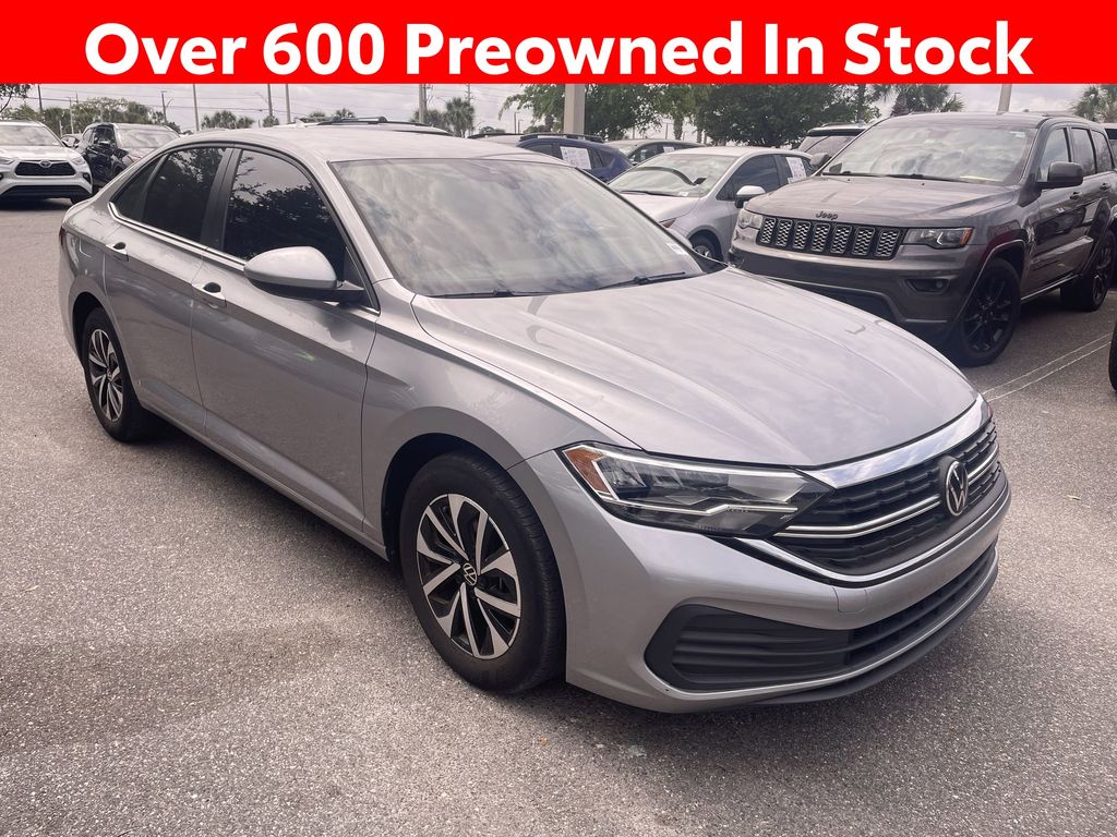 CERTIFIED BY CARFAX - ONE OWNER, REMAINDER OF FACTORY WARRANTY STILL APPLIES, BACKUP CAMERA, BLUETOOTH HANDS FREE, ANDROID AUTO, APPLE CARPLAY, CRUISE CONTROL, NON SMOKER, Jetta 1.5T S, 4D Sedan, 1.5L I-4 DI DOHC Turbocharged, 6-Speed Manual, FWD, Pyrite Silver Metallic, Titan Black w/Cloth Seat Trim, ABS brakes, Electronic Stability Control, Front wheel independent suspension, Fully automatic headlights, Remote keyless entry, Steering wheel mounted audio controls, 4 Speakers, 4-Wheel Disc Brakes, Active Blind Spot Monitor, Air Conditioning, Alloy wheels, Auto-dimming Rear-View mirror, Brake assist, Bumpers: body-color, Cloth Seat Trim, Delay-off headlights, Driver door bin, Driver vanity mirror, Dual front impact airbags, Dual front side impact airbags, Exterior Parking Camera Rear, Front anti-roll bar, Front Bucket Seats, Front Center Armrest, Front Seats, Heated door mirrors, Illuminated entry, Leather Shift Knob, Leather steering wheel, Low tire pressure warning, Occupant sensing airbag, Outside temperature display, Overhead airbag, Overhead console, Panic alarm, Passenger door bin, Passenger vanity mirror, Power door mirrors, Power steering, Power windows, Radio data system, Radio: MIB3 Composition Color w/6.5" Touchscreen, Rain sensing wipers, Rear anti-roll bar, Rear reading lights, Rear window defroster, Speed control, Speed-sensing steering, Split folding rear seat, Tachometer, Telescoping steering wheel, Tilt steering wheel, Traction control, Trip computer, Variably intermittent wipers, Wheels: 16" 2-Tone Machined Alloy, Jetta 1.5T S, 4D Sedan, 1.5L I-4 DI DOHC Turbocharged, 6-Speed Manual, FWD, Pyrite Silver Metallic, Titan Black w/Cloth Seat Trim, ABS brakes, Electronic Stability Control, Front wheel independent suspension, Fully automatic headlights, Remote keyless entry, Steering wheel mounted audio controls.