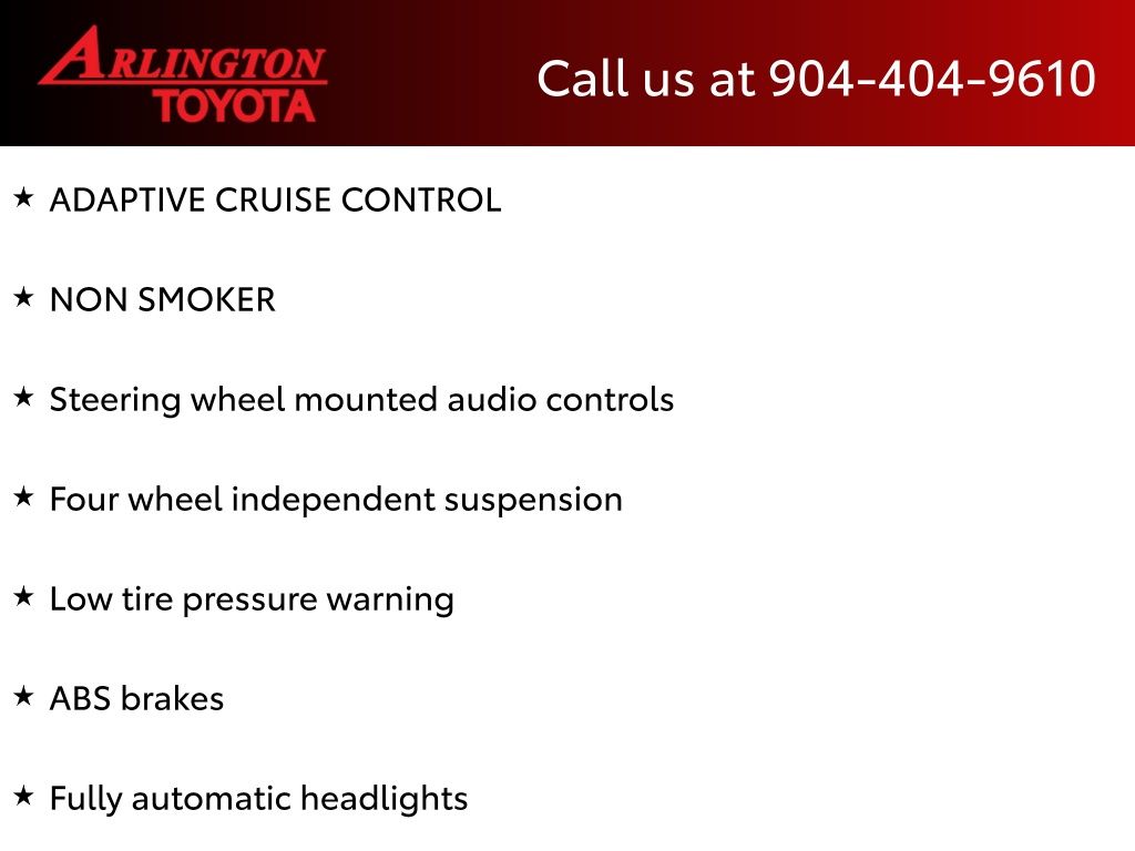 CALL FOR AVAILABILITY AND EXTRA OPTIONS ARLINGTON TOYOTA 904-721-3000.
