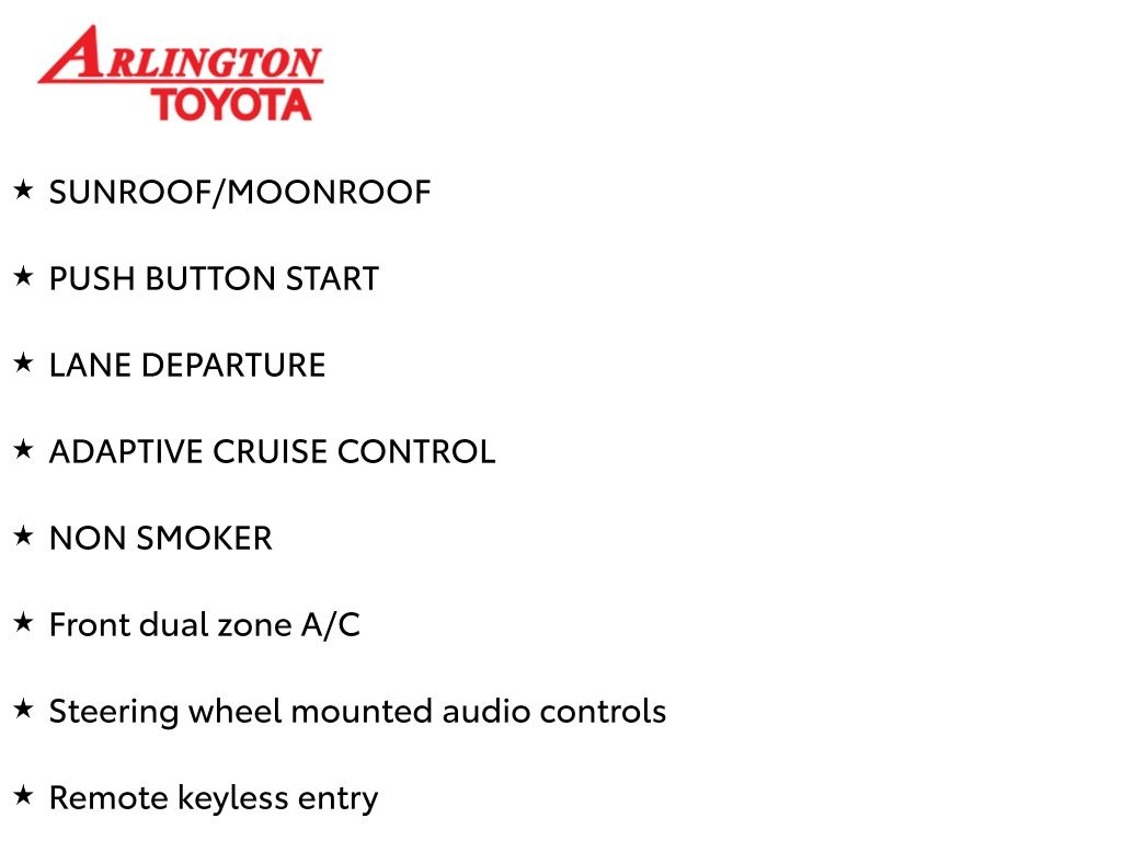 Prices do not include tax, tag, title, a pre-delivery service fee* of $894.00, an electronic registration filing fee* of $199.00 (*these charges represent costs and profits to the dealer for items such as inspecting, cleaning, and preparing documents related to the sale), and an Arlington Toyota Total Value Package of $1,889.00 (*these charges represent costs and profits to the dealer for items such as inspecting, cleaning, and preparing documents related to the sale). The final price is also subject to repair order reconditioning costs. Any price does not include dealer-installed accessories. All offers are mutually exclusive. All vehicles are subject to prior sale. See dealer for complete details.