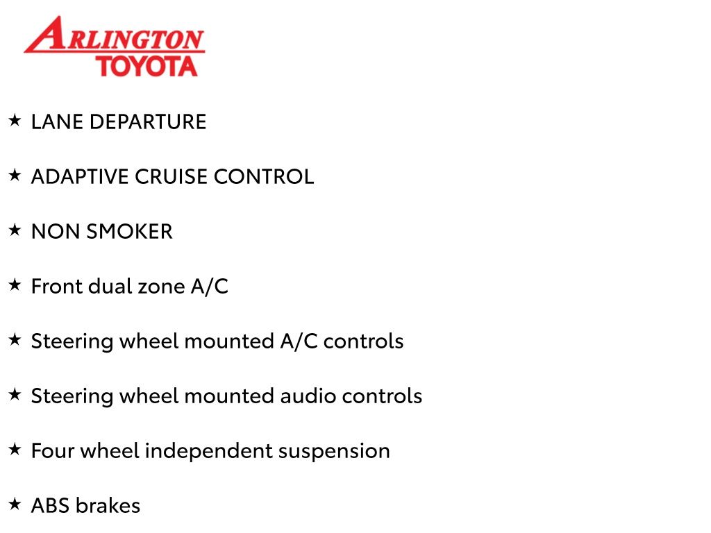 Prices do not include tax, tag, title, a pre-delivery service fee* of $894.00, an electronic registration filing fee* of $199.00 (*these charges represent costs and profits to the dealer for items such as inspecting, cleaning, and preparing documents related to the sale), and an Arlington Toyota Total Value Package of $1,889.00 (*these charges represent costs and profits to the dealer for items such as inspecting, cleaning, and preparing documents related to the sale). The final price is also subject to repair order reconditioning costs. Any price does not include dealer-installed accessories. All offers are mutually exclusive. All vehicles are subject to prior sale. See dealer for complete details.