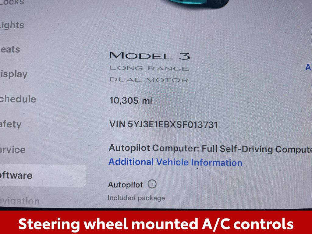 REMAINDER OF FACTORY WARRANTY STILL APPLIES, BACKUP CAMERA, BLUETOOTH HANDS FREE, BLIND SPOT MONITORING, AWD/ALLWHEEL DRIVE, POWER SEATS, MEMORY SEATS, NAVIGATION SYSTEM, LANE DEPARTURE, ADAPTIVE CRUISE CONTROL, NON SMOKER, Model 3 Long Range AWD, 4D Sedan, Electric Motor, 1-Speed Automatic, AWD, Pearl White Multi-Coat, Black w/Vegan Leather Seat Trim, ABS brakes, Four wheel independent suspension, Front dual zone A/C, Fully automatic headlights, Lane Departure Warning System, Low tire pressure warning, Steering wheel mounted A/C controls, Steering wheel mounted audio controls, 4-Wheel Disc Brakes, Air Conditioning, Alloy wheels, Audio memory, Auto High-beam Headlights, Auto-dimming door mirrors, Auto-dimming Rear-View mirror, Automatic temperature control, Brake assist, Bumpers: body-color, Compass, Delay-off headlights, Driver door bin, Driver vanity mirror, Dual front impact airbags, Dual front side impact airbags, Electronic Stability Control, Exterior Parking Camera Rear, Front anti-roll bar, Front Bucket Seats, Front Center Armrest w/Storage, Front reading lights, Heated and Ventilated Front Seats, Heated door mirrors, Heated front seats, Heated rear seats, Heated steering wheel, HVAC memory, Illuminated entry, Knee airbag, Memory seat, Navigation System, Occupant sensing airbag, Outside temperature display, Overhead airbag, Passenger door bin, Passenger vanity mirror, Power door mirrors, Power driver seat, Power passenger seat, Power steering, Power windows, Radio data system, Rain sensing wipers, Rear air conditioning, Rear audio controls, Rear reading lights, Rear seat center armrest, Rear window defroster, Security system, Speed control, Speed-sensing steering, Split folding rear seat, Steering wheel memory, Telescoping steering wheel, Tilt steering wheel, Traction control, Trip computer, Variably intermittent wipers, Vegan Leather Seat Trim, Ventilated front seats, Wheels: 18" x 8.5" Photon, Model 3 Long Range AWD, 4D Sedan, Electric Motor, 1-Speed Automatic, AWD, Pearl White Multi-Coat, Black w/Vegan Leather Seat Trim, ABS brakes, Four wheel independent suspension, Front dual zone A/C, Fully automatic headlights, Lane Departure Warning System, Low tire pressure warning, Steering wheel mounted A/C controls, Steering wheel mounted audio controls.