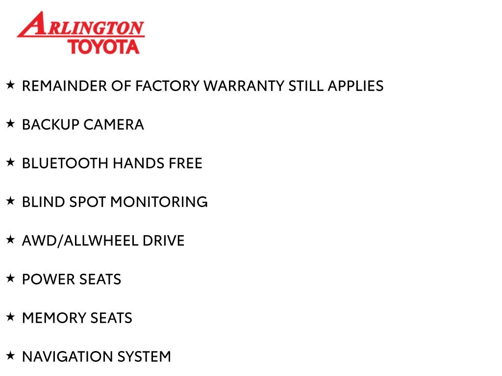 Prices do not include tax, tag, title, a pre-delivery service fee* of $894.00, an electronic registration filing fee* of $199.00 (*these charges represent costs and profits to the dealer for items such as inspecting, cleaning, and preparing documents related to the sale), and an Arlington Toyota Total Value Package of $1,889.00 (*these charges represent costs and profits to the dealer for items such as inspecting, cleaning, and preparing documents related to the sale). The final price is also subject to repair order reconditioning costs. Any price does not include dealer-installed accessories. All offers are mutually exclusive. All vehicles are subject to prior sale. See dealer for complete details.