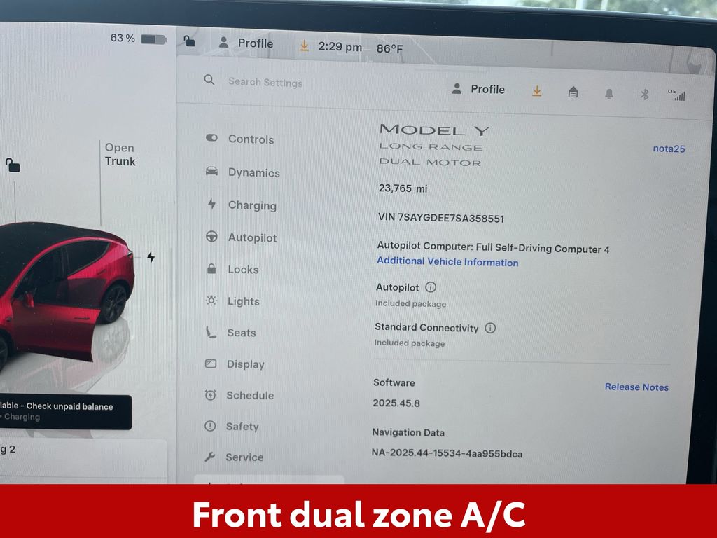 CERTIFIED BY CARFAX - ONE OWNER, REMAINDER OF FACTORY WARRANTY STILL APPLIES, BACKUP CAMERA, BLUETOOTH HANDS FREE, BLIND SPOT MONITORING, AWD/ALLWHEEL DRIVE, POWER SEATS, MEMORY SEATS, NAVIGATION SYSTEM, POWER LIFTGATE, LANE DEPARTURE, ADAPTIVE CRUISE CONTROL, NON SMOKER, Model Y Long Range AWD, 4D Sport Utility, Electric Motor, 1-Speed Automatic, AWD, Ultra Red, Black w/Vegan Leather Seat Trim, ABS brakes, Four wheel independent suspension, Front dual zone A/C, Low tire pressure warning, Steering wheel mounted A/C controls, Steering wheel mounted audio controls, 14 Speakers, 4-Wheel Disc Brakes, 5 Seat Interior, Air Conditioning, Alloy wheels, Audio memory, Auto High-beam Headlights, Auto tilt-away steering wheel, Auto-dimming door mirrors, Auto-dimming Rear-View mirror, Automatic temperature control, Brake assist, Bumpers: body-color, Compass, Delay-off headlights, Driver door bin, Driver vanity mirror, Dual front impact airbags, Dual front side impact airbags, Electronic Stability Control, Exterior Parking Camera Rear, Front anti-roll bar, Front Bucket Seats, Front Center Armrest, Front fog lights, Front reading lights, Fully automatic headlights, Genuine wood dashboard insert, Heated door mirrors, Heated front seats, Heated rear seats, Heated steering wheel, HVAC memory, Illuminated entry, Knee airbag, Lane Departure Warning System, Memory seat, Navigation System, Occupant sensing airbag, Outside temperature display, Overhead airbag, Passenger door bin, Passenger vanity mirror, Power door mirrors, Power driver seat, Power Liftgate, Power passenger seat, Power steering, Power windows, Radio data system, Radio: Premium Audio System with 13 Speakers, Rain sensing wipers, Rear air conditioning, Rear reading lights, Rear seat center armrest, Rear window defroster, Security system, Speed control, Speed-sensing steering, Split folding rear seat, Steering wheel memory, Telescoping steering wheel, Tilt steering wheel, Traction control, Trip computer, Variably intermittent wipers, Vegan Leather Seat Trim, Wheels: 19" x 9.5" Gemini Dark, Model Y Long Range AWD, 4D Sport Utility, Electric Motor, 1-Speed Automatic, AWD, Ultra Red, Black w/Vegan Leather Seat Trim, ABS brakes, Four wheel independent suspension, Front dual zone A/C, Low tire pressure warning, Steering wheel mounted A/C controls, Steering wheel mounted audio controls.