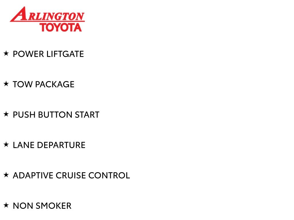 Prices do not include tax, tag, title, a pre-delivery service fee* of $894.00, an electronic registration filing fee* of $199.00 (*these charges represent costs and profits to the dealer for items such as inspecting, cleaning, and preparing documents related to the sale), and an Arlington Toyota Total Value Package of $1,889.00 (*these charges represent costs and profits to the dealer for items such as inspecting, cleaning, and preparing documents related to the sale). The final price is also subject to repair order reconditioning costs. Any price does not include dealer-installed accessories. All offers are mutually exclusive. All vehicles are subject to prior sale. See dealer for complete details.