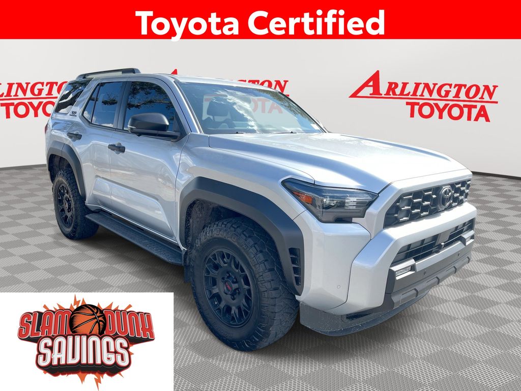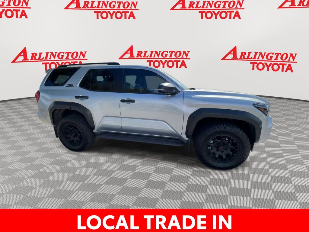 REMAINDER OF FACTORY WARRANTY STILL APPLIES, BACKUP CAMERA, BLUETOOTH HANDS FREE, ANDROID AUTO, APPLE CARPLAY, 4X4/FOUR WHEEL DRIVE, POWER SEATS, LOCAL TRADE IN, POWER LIFTGATE, TOW PACKAGE, PUSH BUTTON START, LANE DEPARTURE, ADAPTIVE CRUISE CONTROL, NON SMOKER, 4Runner TRD Off-Road Premium 4X4, Toyota Gold Certified Certified, 4D Sport Utility, 2.4L 4-Cylinder, 8-Speed Automatic, 4WD, Cutting Edge, Black w/SofTex Seat Trim, 4-Wheel Disc Brakes, ABS brakes, Air Conditioning, Alloy wheels, AM/FM radio: SiriusXM, Anti-whiplash front head restraints, Apple CarPlay/Android Auto, Auto High-beam Headlights, Automatic temperature control, Brake assist, Bumpers: body-color, Driver door bin, Driver vanity mirror, Dual front impact airbags, Dual front side impact airbags, Electronic Stability Control, Emergency communication system: Safety Connect (1-year trial), Exterior Parking Camera Rear, Front anti-roll bar, Front Bucket Seats, Front Center Armrest, Front dual zone A/C, Front fog lights, Front reading lights, Front wheel independent suspension, Heated door mirrors, Illuminated entry, Knee airbag, Leather Shift Knob, Leather steering wheel, Low tire pressure warning, Occupant sensing airbag, Outside temperature display, Overhead airbag, Overhead console, Panic alarm, Passenger door bin, Passenger vanity mirror, Power door mirrors, Power steering, Power windows, Rear anti-roll bar, Rear seat center armrest, Rear side impact airbag, Rear window defroster, Rear window wiper, Remote keyless entry, Security system, Speed control, Speed-sensing steering, Split folding rear seat, Spoiler, Steering wheel mounted audio controls, Tachometer, Telescoping steering wheel, Tilt steering wheel, Traction control, Trip computer, Variably intermittent wipers, 4Runner TRD Off-Road Premium 4X4, 4D Sport Utility, 2.4L 4-Cylinder, 8-Speed Automatic, 4WD, Cutting Edge, Black w/SofTex Seat Trim.