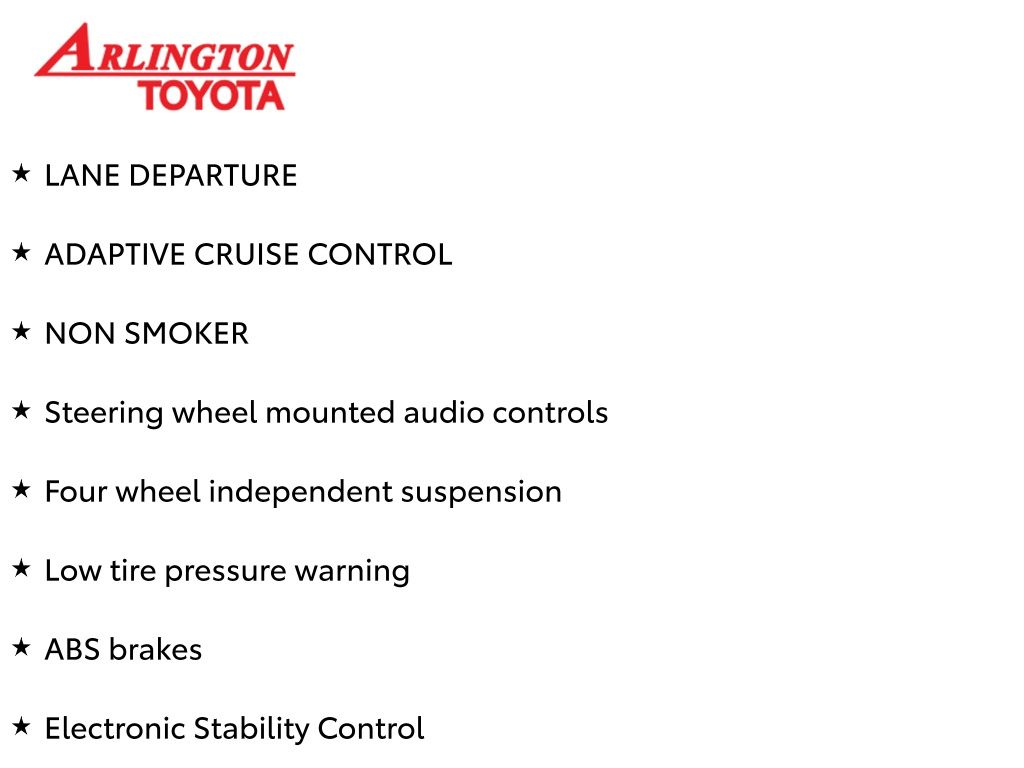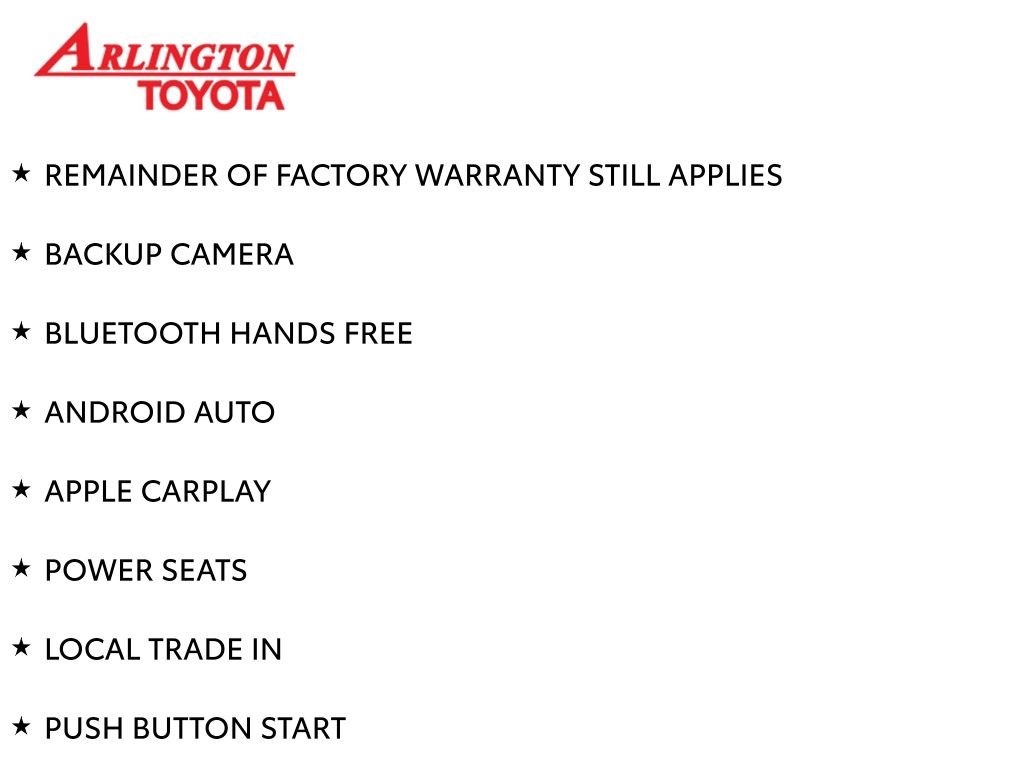 Prices do not include tax, tag, title, a pre-delivery service fee* of $894.00, an electronic registration filing fee* of $199.00 (*these charges represent costs and profits to the dealer for items such as inspecting, cleaning, and preparing documents related to the sale), and an Arlington Toyota Total Value Package of $1,889.00 (*these charges represent costs and profits to the dealer for items such as inspecting, cleaning, and preparing documents related to the sale). The final price is also subject to repair order reconditioning costs. Any price does not include dealer-installed accessories. All offers are mutually exclusive. All vehicles are subject to prior sale. See dealer for complete details.