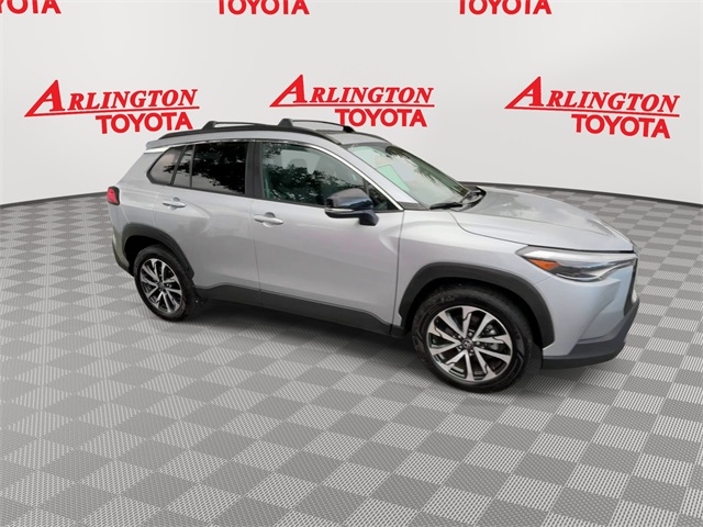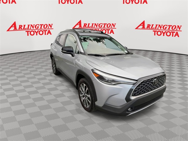 Recent Arrival!CERTIFIED BY CARFAX - ONE OWNER, REMAINDER OF FACTORY WARRANTY STILL APPLIES, BACKUP CAMERA, BLUETOOTH HANDS FREE, ANDROID AUTO, APPLE CARPLAY, POWER SEATS, POWER LIFTGATE, SUNROOF/MOONROOF, PUSH BUTTON START, LANE DEPARTURE, ADAPTIVE CRUISE CONTROL, NON SMOKER, Corolla Cross XLE AWD, 4D Sport Utility, 2.0L I4 PDI DOHC 16V LEV3-SULEV30 169hp, CVT, AWD, Sonic Silver, Black w/SofTex Mixed Media Seat Trim, ABS brakes, Electronic Stability Control, Four wheel independent suspension, Fully automatic headlights, Low tire pressure warning, Remote keyless entry, Steering wheel mounted audio controls, Turn signal indicator mirrors, 4-Wheel Disc Brakes, 6 Speakers, Air Conditioning, Alloy wheels, AM/FM radio: SiriusXM, Auto High-beam Headlights, Auto-dimming Rear-View mirror, Automatic temperature control, Brake assist, Bumpers: body-color, Convenience Package, Delay-off headlights, Driver door bin, Driver vanity mirror, Dual front impact airbags, Dual front side impact airbags, Exterior Parking Camera Rear, Front anti-roll bar, Front Bucket Seats, Front Center Armrest, Front dual zone A/C, Front fog lights, Front reading lights, Garage door transmitter: HomeLink, Heated door mirrors, Heated Front Bucket Seats, Heated front seats, Illuminated entry, Knee airbag, Leather Shift Knob, Leather steering wheel, Occupant sensing airbag, Outside temperature display, Overhead airbag, Panic alarm, Passenger door bin, Passenger vanity mirror, PBD Auto & Easy Closer Door, Power door mirrors, Power driver seat, Power steering, Power windows, Radio data system, Radio: 8" Toyota Audio Multimedia w/6 Speakers, Rear anti-roll bar, Rear seat center armrest, Rear side impact airbag, Rear window defroster, Rear window wiper, Softex Synthetic Leather Seat Trim, Speed control, Split folding rear seat, Spoiler, Tachometer, Telescoping steering wheel, Tilt & Slide Moonroof, Tilt steering wheel, Traction control, Trip computer, Variably intermittent wipers, Wheels: 18" Black-Painted Machined Alloy, Corolla Cross XLE AWD, 4D Sport Utility, 2.0L I4 PDI DOHC 16V LEV3-SULEV30 169hp, CVT, AWD, Sonic Silver, Black w/SofTex Mixed Media Seat Trim, ABS brakes, Electronic Stability Control, Four wheel independent suspension, Fully automatic headlights, Low tire pressure warning, Remote keyless entry, Steering wheel mounted audio controls, Turn signal indicator mirrors.Toyota Gold Certified Details: * Roadside Assistance for 7 Year / 100,000 Mile. Standard New-Car Financing Rates Available. Warranty honored at over 1,400 Toyota dealers in the continental U.S. & Canada. Trade-ins accepted. Trouble-free handling of your transaction, including DMV paperwork * Roadside Assistance * Limited Warranty: 12 Month/12,000 Mile Limited Comprehensive Warranty: 12 Month/12,000 Mile (whichever comes first) from certified purchase date * Powertrain Limited Warranty: 84 Month/100,000 Mile (whichever comes first) from TCUV purchase date * Vehicle History * Transferable Warranty * Warranty Deductible: $0 * 160 Point InspectionCALL FOR AVAILABILITY AND EXTRA OPTIONS ARLINGTON TOYOTA 904-721-3000.
