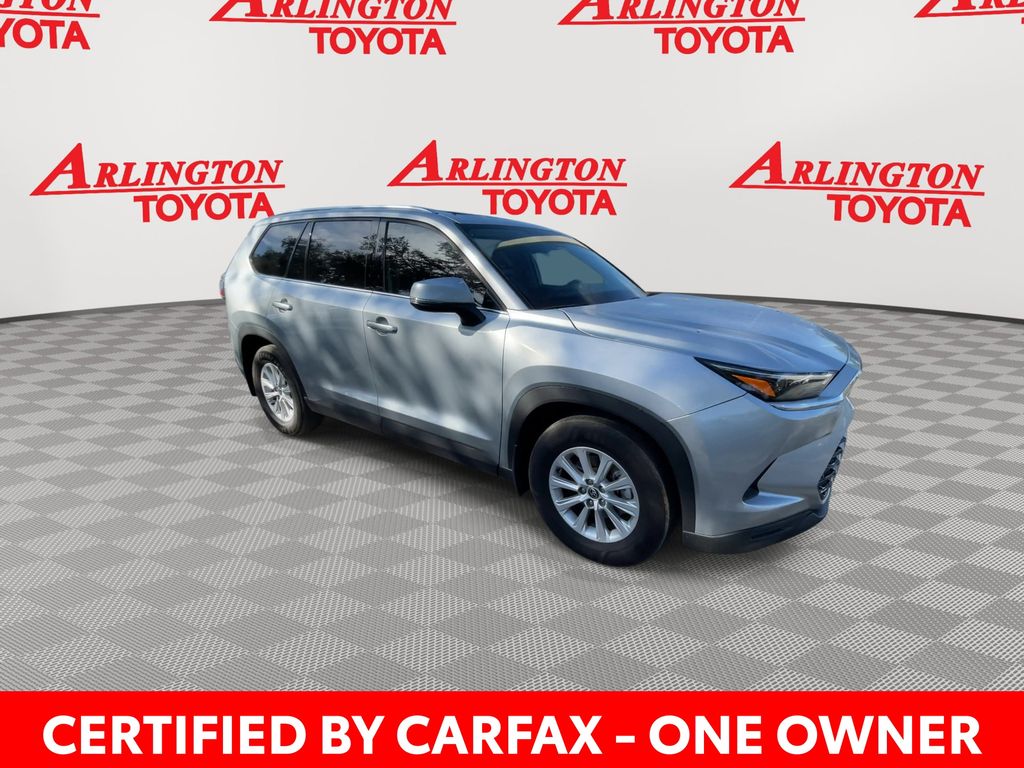CERTIFIED BY CARFAX - ONE OWNER, REMAINDER OF FACTORY WARRANTY STILL APPLIES, BACKUP CAMERA, BLUETOOTH HANDS FREE, ANDROID AUTO, APPLE CARPLAY, HEATED LEATHER SEATS, POWER SEATS, PANORAMIC MOONROOF, POWER LIFTGATE, THIRD ROW SEATING, PUSH BUTTON START, LANE DEPARTURE, ADAPTIVE CRUISE CONTROL, NON SMOKER, Grand Highlander XLE PANORAMIC ROOF, Toyota Gold Certified Certified, 4D Sport Utility, 2.4L 4-Cylinder, 8-Speed Automatic, FWD, Celestial Silver Metallic, Black w/SofTex Seat Trim, ABS brakes, Electronic Stability Control, Four wheel independent suspension, Front dual zone A/C, Fully automatic headlights, Low tire pressure warning, Remote keyless entry, Steering wheel mounted audio controls, 3rd row seats: split-bench, 4-Wheel Disc Brakes, 6 Speakers, Air Conditioning, Alloy wheels, AM/FM radio: SiriusXM, Apple CarPlay/Android Auto, Auto High-beam Headlights, Auto-dimming Rear-View mirror, Automatic temperature control, Brake assist, Bumpers: body-color, Delay-off headlights, Driver door bin, Driver vanity mirror, Dual front impact airbags, Dual front side impact airbags, Exterior Parking Camera Rear, Front anti-roll bar, Front Bucket Seats, Front Center Armrest, Front reading lights, Garage door transmitter: HomeLink, Heated door mirrors, Heated Front Seats, Heated front seats, Illuminated entry, Knee airbag, Leather Shift Knob, Leather steering wheel, Mudguards, Navigation system: Drive Connect Cloud Navigation (1-year trial subscription), Occupant sensing airbag, Outside temperature display, Overhead airbag, Overhead console, Panic alarm, Panoramic Roof, Passenger door bin, Passenger vanity mirror, Power door mirrors, Power driver seat, Power Liftgate, Power passenger seat, Power steering, Power windows, Radio: 12.3" Toyota Multimedia Audio, Rear air conditioning, Rear anti-roll bar, Rear Hatch Cargo Lamps, Rear reading lights, Rear window defroster, Rear window wiper, Reclining 3rd row seat, Security system, SofTex Seat Trim, Speed control, Speed-sensing steering, Split folding rear seat, Spoiler, Tachometer, Telescoping steering wheel, Tilt steering wheel, Traction control, Trip computer, Turn signal indicator mirrors, Variably intermittent wipers, Wheels: 18" Multi-Spoke Silver Painted Alloy, Grand Highlander XLE PANORAMIC ROOF, 4D Sport Utility, 2.4L 4-Cylinder, 8-Speed Automatic, FWD, Celestial Silver Metallic, Black w/SofTex Seat Trim, ABS brakes, Electronic Stability Control, Four wheel independent suspension, Front dual zone A/C, Fully automatic headlights, Low tire pressure warning, Remote keyless entry, Steering wheel mounted audio controls.