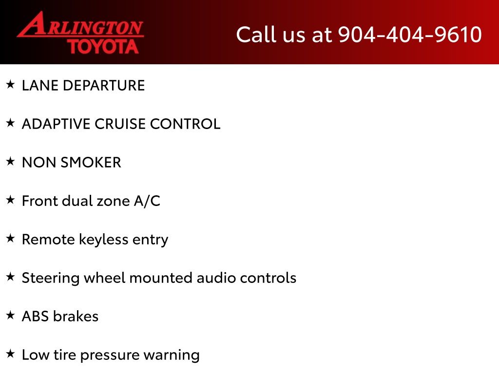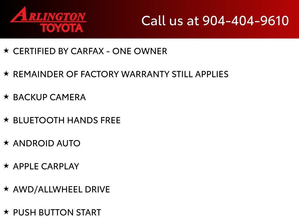 CALL FOR AVAILABILITY AND EXTRA OPTIONS ARLINGTON TOYOTA 904-721-3000.