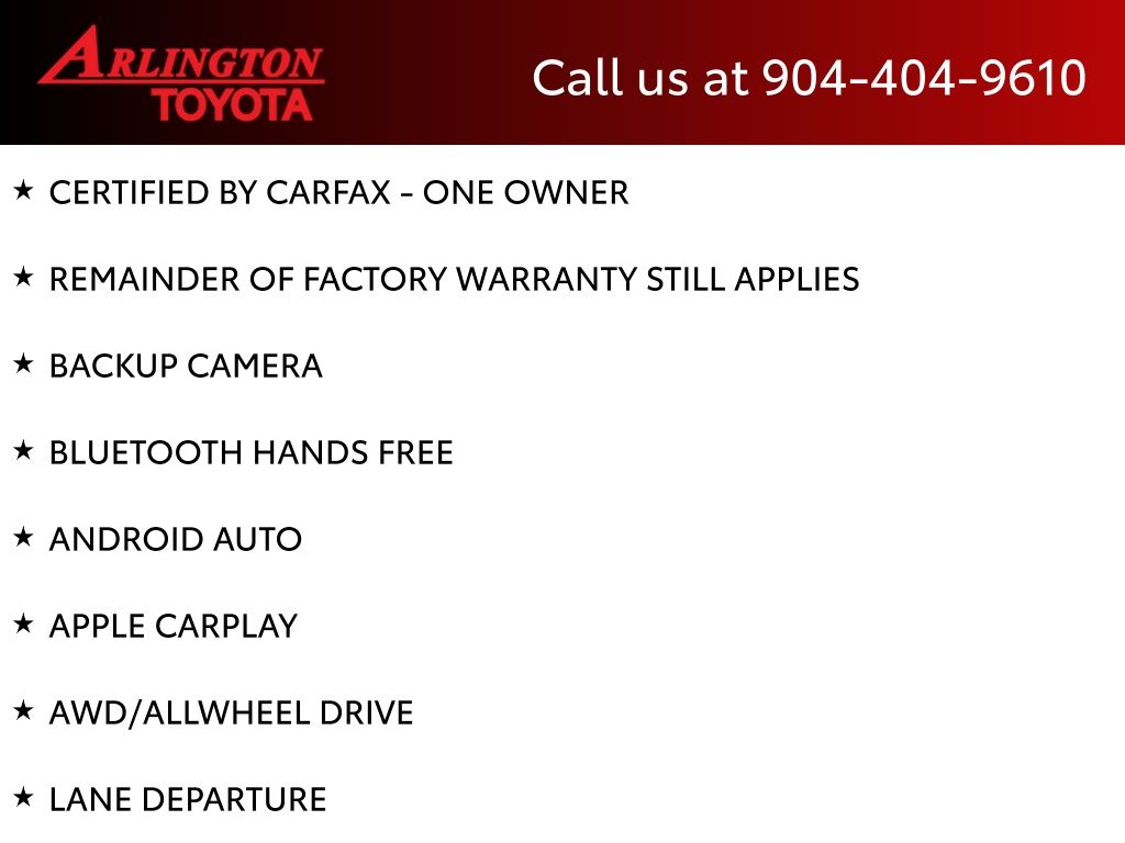CALL FOR AVAILABILITY AND EXTRA OPTIONS ARLINGTON TOYOTA 904-721-3000.