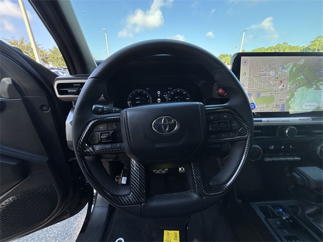 CERTIFIED BY CARFAX - ONE OWNER, REMAINDER OF FACTORY WARRANTY STILL APPLIES, BACKUP CAMERA, BLUETOOTH HANDS FREE, ANDROID AUTO, APPLE CARPLAY, 4X4/FOUR WHEEL DRIVE, BED LINER, LOCAL TRADE IN, TOW PACKAGE, PUSH BUTTON START, LANE DEPARTURE, ADAPTIVE CRUISE CONTROL, NON SMOKER, Tacoma Hybrid TRD Sport 4x4, 4D Crew Cab, 2.4L I4 PDI Hybrid Turbocharged DOHC 16V, 8-Speed Automatic, 4WD, Black, ABS brakes, Electronic Stability Control, Fully automatic headlights, Low tire pressure warning, Turn signal indicator mirrors, 3.583 Axle Ratio, 4-Wheel Disc Brakes, Air Conditioning, Alloy wheels, AM/FM radio: SiriusXM, Anti-whiplash front head restraints, Apple CarPlay/Android Auto, Auto High-beam Headlights, Auto-dimming Rear-View mirror, Automatic temperature control, Brake assist, Bumpers: body-color, Driver door bin, Driver vanity mirror, Dual front impact airbags, Dual front side impact airbags, Emergency communication system: Safety Connect (1-year trial), Exterior Parking Camera Rear, Four wheel independent suspension, Front anti-roll bar, Front Bucket Seats, Front Center Armrest, Front fog lights, Front reading lights, Heated door mirrors, Illuminated entry, JBL Premium Audio, Knee airbag, Leather Shift Knob, Leather steering wheel, Navigation system: Drive Connect (1 year trial) includes Cloud Navigation with real time traffic and Google POI, Occupant sensing airbag, Outside temperature display, Overhead airbag, Overhead console, Panic alarm, Passenger door bin, Passenger vanity mirror, Power door mirrors, Power steering, Power windows, Radio: 14" Toyota Audio Multimedia, Rear step bumper, Rear window defroster, Remote keyless entry, Security system, SofTex Seat Trim, Speed control, Speed-sensing steering, Split folding rear seat, Steering wheel mounted audio controls, Tachometer, Telescoping steering wheel, Tilt steering wheel, Traction control, Trip computer, Variably intermittent wipers, Tacoma Hybrid TRD Sport 4x4, 4D Crew Cab, 2.4L I4 PDI Hybrid Turbocharged DOHC 16V, 8-Speed Automatic, 4WD, Black, ABS brakes, Electronic Stability Control, Fully automatic headlights, Low tire pressure warning, Turn signal indicator mirrors.CALL FOR AVAILABILITY AND EXTRA OPTIONS ARLINGTON TOYOTA 904-721-3000.