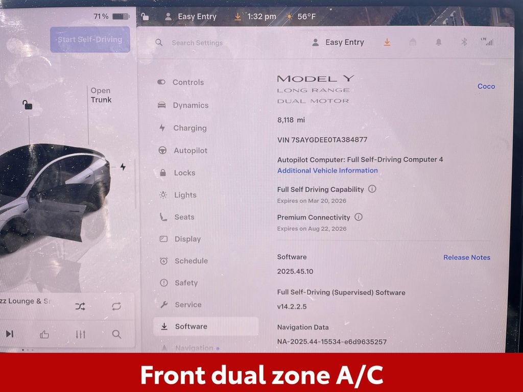 CERTIFIED BY CARFAX - ONE OWNER, REMAINDER OF FACTORY WARRANTY STILL APPLIES, BACKUP CAMERA, BLUETOOTH HANDS FREE, BLIND SPOT MONITORING, AWD/ALLWHEEL DRIVE, POWER SEATS, MEMORY SEATS, NAVIGATION SYSTEM, POWER LIFTGATE, LANE DEPARTURE, ADAPTIVE CRUISE CONTROL, NON SMOKER, Model Y Long Range AWD, 4D Sport Utility, Electric Motor, 1-Speed Automatic, AWD, Quicksilver, Black w/Vegan Leather Seat Trim, ABS brakes, Four wheel independent suspension, Front dual zone A/C, Low tire pressure warning, Steering wheel mounted A/C controls, Steering wheel mounted audio controls, 4-Wheel Disc Brakes, 5 Seat Interior, Air Conditioning, Alloy wheels, Audio memory, Auto High-beam Headlights, Auto tilt-away steering wheel, Auto-dimming door mirrors, Auto-dimming Rear-View mirror, Automatic temperature control, Brake assist, Bumpers: body-color, Compass, Delay-off headlights, Driver door bin, Driver vanity mirror, Dual front impact airbags, Dual front side impact airbags, Electronic Stability Control, Emergency communication system, Exterior Parking Camera Rear, Front anti-roll bar, Front Bucket Seats, Front Center Armrest, Front reading lights, Fully automatic headlights, Heated door mirrors, Heated front seats, Heated rear seats, Heated steering wheel, HVAC memory, Illuminated entry, Lane Departure Warning System, Memory seat, Navigation System, Occupant sensing airbag, Outside temperature display, Overhead airbag, Passenger door bin, Passenger vanity mirror, Power door mirrors, Power driver seat, Power Liftgate, Power passenger seat, Power steering, Power windows, Radio data system, Rain sensing wipers, Rear air conditioning, Rear audio controls, Rear reading lights, Rear seat center armrest, Rear window defroster, Security system, Speed control, Speed-sensing steering, Split folding rear seat, Steering wheel memory, Telescoping steering wheel, Tilt steering wheel, Traction control, Trip computer, Variably intermittent wipers, Wheels: 19" Crossflow, Model Y Long Range AWD, 4D Sport Utility, Electric Motor, 1-Speed Automatic, AWD, Quicksilver, Black w/Vegan Leather Seat Trim, ABS brakes, Four wheel independent suspension, Front dual zone A/C, Low tire pressure warning, Steering wheel mounted A/C controls, Steering wheel mounted audio controls.