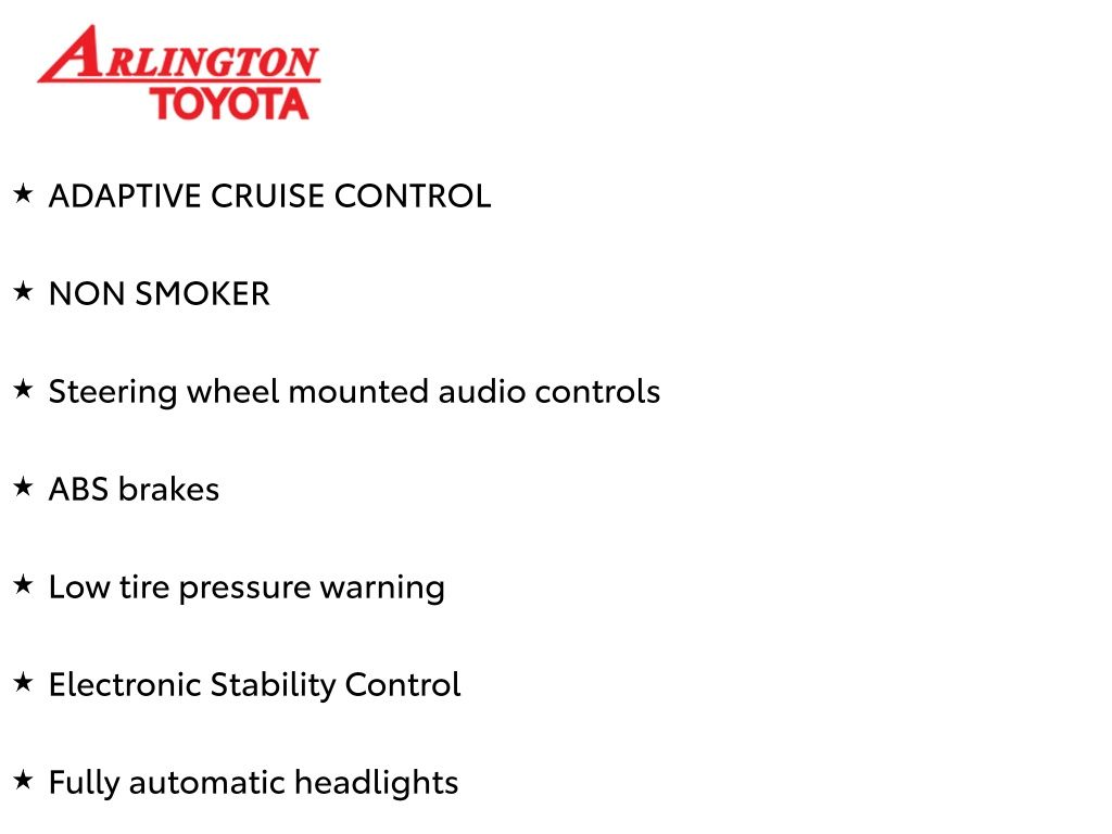 Prices do not include tax, tag, title, a pre-delivery service fee* of $894.00, an electronic registration filing fee* of $199.00 (*these charges represent costs and profits to the dealer for items such as inspecting, cleaning, and preparing documents related to the sale), and an Arlington Toyota Total Value Package of $1,889.00 (*these charges represent costs and profits to the dealer for items such as inspecting, cleaning, and preparing documents related to the sale). The final price is also subject to repair order reconditioning costs. Any price does not include dealer-installed accessories. All offers are mutually exclusive. All vehicles are subject to prior sale. See dealer for complete details.