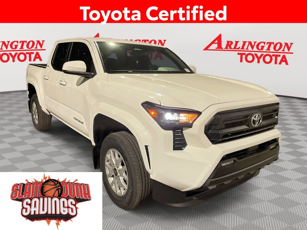 CERTIFIED BY CARFAX - ONE OWNER, REMAINDER OF FACTORY WARRANTY STILL APPLIES, BACKUP CAMERA, BLUETOOTH HANDS FREE, ANDROID AUTO, APPLE CARPLAY, BED LINER, LOCAL TRADE IN, TOW PACKAGE, PUSH BUTTON START, LANE DEPARTURE, ADAPTIVE CRUISE CONTROL, NON SMOKER, Tacoma SR5, Toyota Gold Certified Certified, 4D Double Cab, 2.4L 4-Cylinder, 8-Speed Automatic, RWD, Ice Cap, Black Cloth, Steering wheel mounted audio controls, 3.583 Axle Ratio, 4-Wheel Disc Brakes, 6 Speakers, ABS brakes, Air Conditioning, Alloy wheels, AM/FM radio: SiriusXM, Anti-whiplash front head restraints, Apple CarPlay/Android Auto, Auto High-beam Headlights, Auto-dimming Rear-View mirror, Brake assist, Bumpers: body-color, Driver door bin, Dual front impact airbags, Dual front side impact airbags, Electronic Stability Control, Emergency communication system: Safety Connect (up to 10-year trial subscription), Exterior Parking Camera Rear, Fabric Seat Trim, Four wheel independent suspension, Front anti-roll bar, Front Bucket Seats, Front Center Armrest, Front fog lights, Front reading lights, Fully automatic headlights, Heated door mirrors, Illuminated entry, Knee airbag, Low tire pressure warning, Occupant sensing airbag, Outside temperature display, Overhead airbag, Overhead console, Panic alarm, Passenger door bin, Power door mirrors, Power steering, Power windows, Radio: 8" Toyota Audio Multimedia, Rear step bumper, Rear window defroster, Remote keyless entry, Speed control, Speed-sensing steering, Split folding rear seat, Tachometer, Telescoping steering wheel, Tilt steering wheel, Traction control, Trip computer, Variably intermittent wipers, Wheels: 17" Styled Alloy, Tacoma SR5, 4D Double Cab, 2.4L 4-Cylinder, 8-Speed Automatic, RWD, Ice Cap, Black Cloth, Steering wheel mounted audio controls.