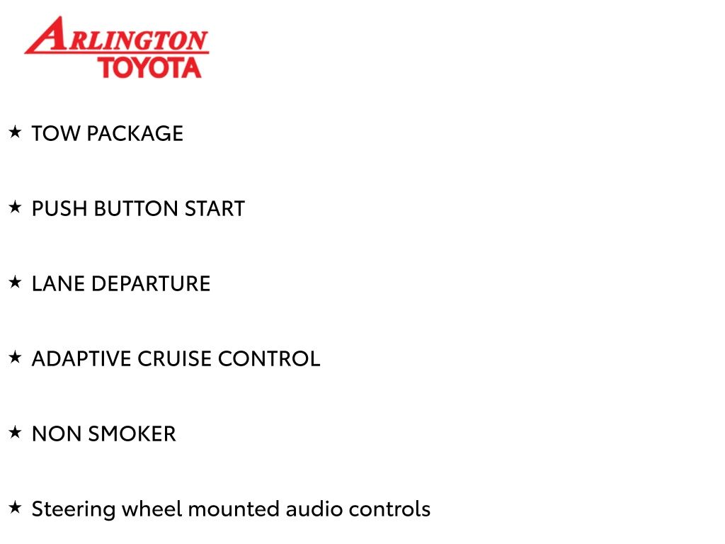 Prices do not include tax, tag, title, a pre-delivery service fee* of $894.00, an electronic registration filing fee* of $199.00 (*these charges represent costs and profits to the dealer for items such as inspecting, cleaning, and preparing documents related to the sale), and an Arlington Toyota Total Value Package of $1,889.00 (*these charges represent costs and profits to the dealer for items such as inspecting, cleaning, and preparing documents related to the sale). The final price is also subject to repair order reconditioning costs. Any price does not include dealer-installed accessories. All offers are mutually exclusive. All vehicles are subject to prior sale. See dealer for complete details.